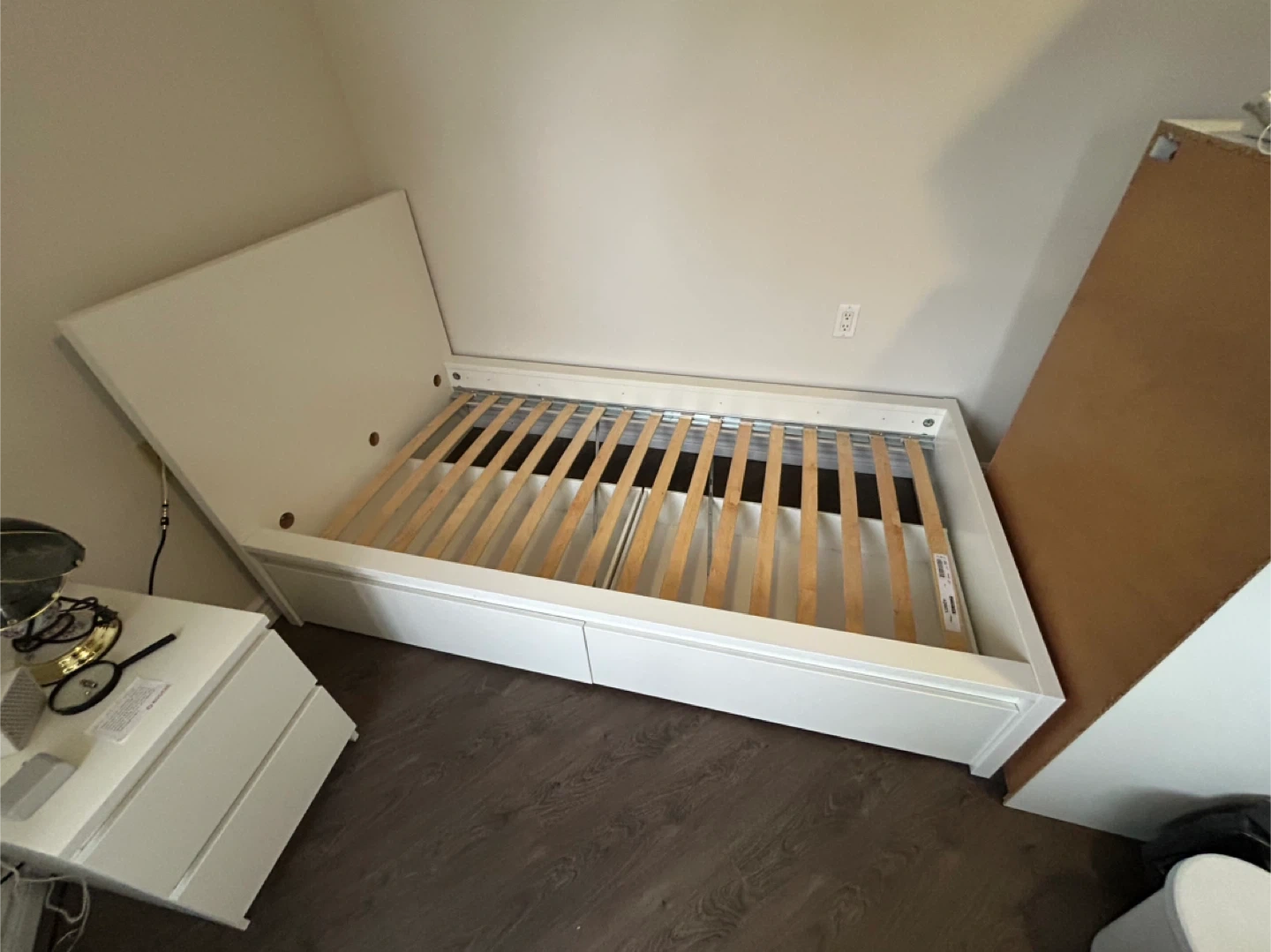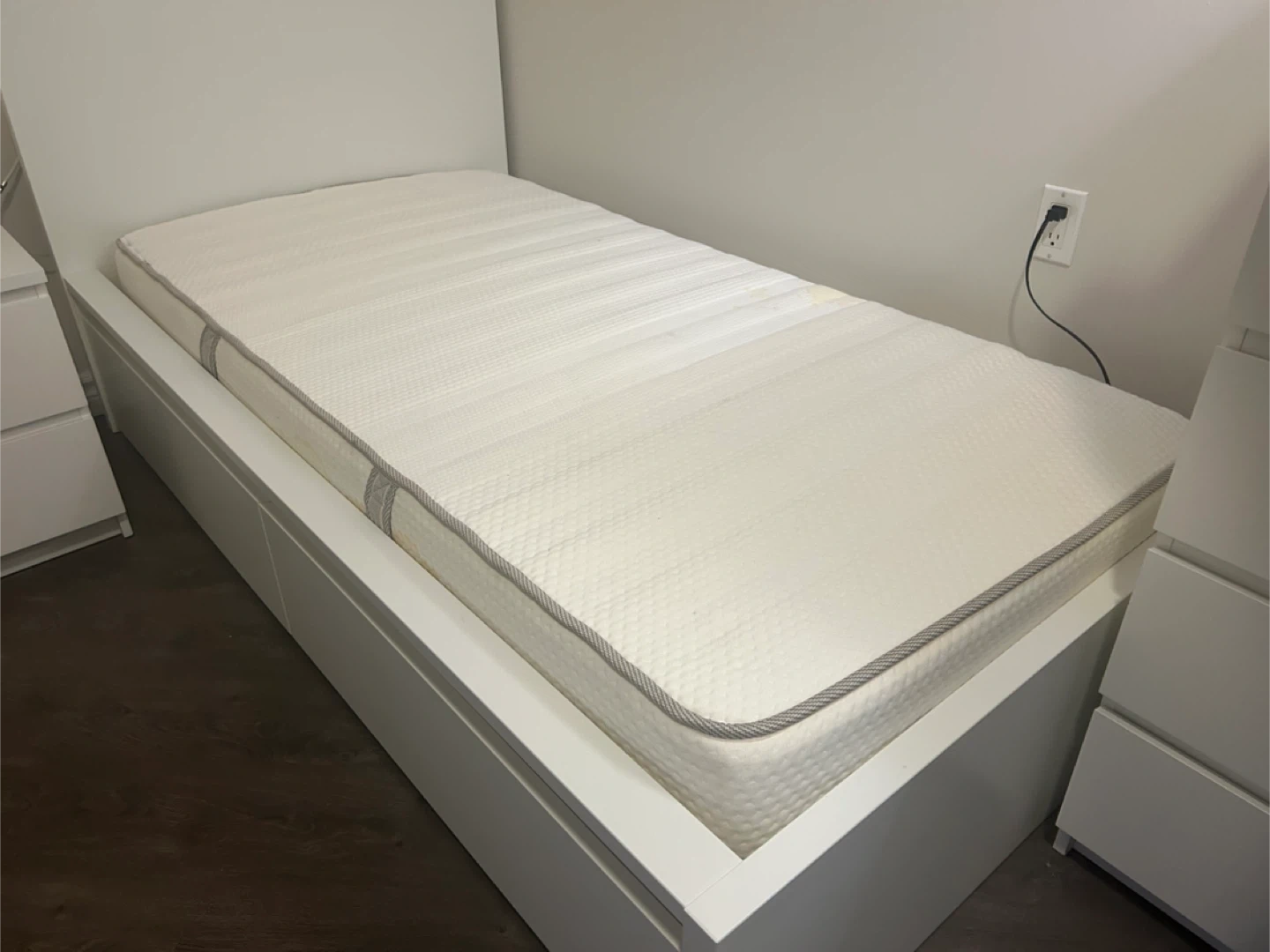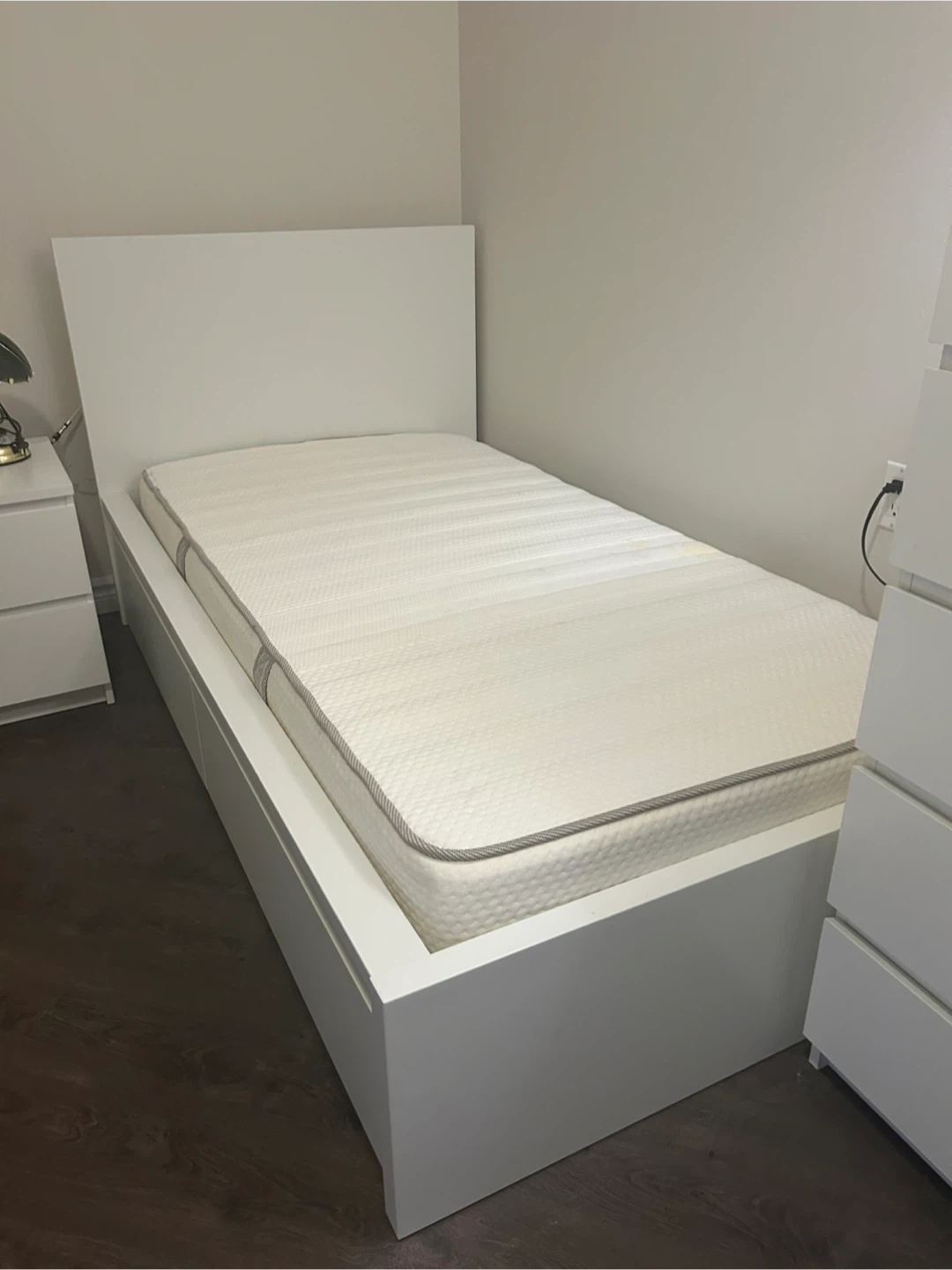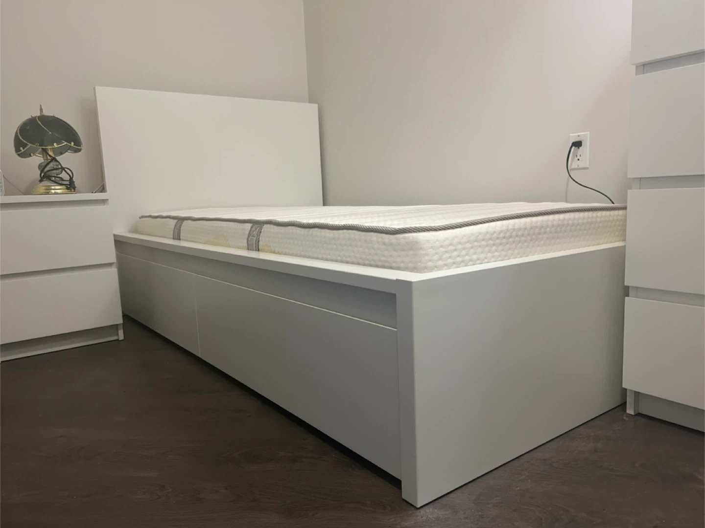 IKEA White Twin Bed Frame with Storage Drawers and Mattress