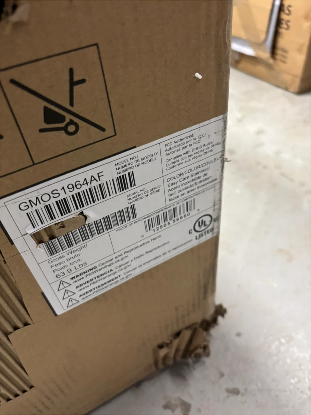 This is a Frigidaire over-the-range microwave oven, model GMOS1964AF. It's stainless steel with an easy-care surface. Includes original box and components.