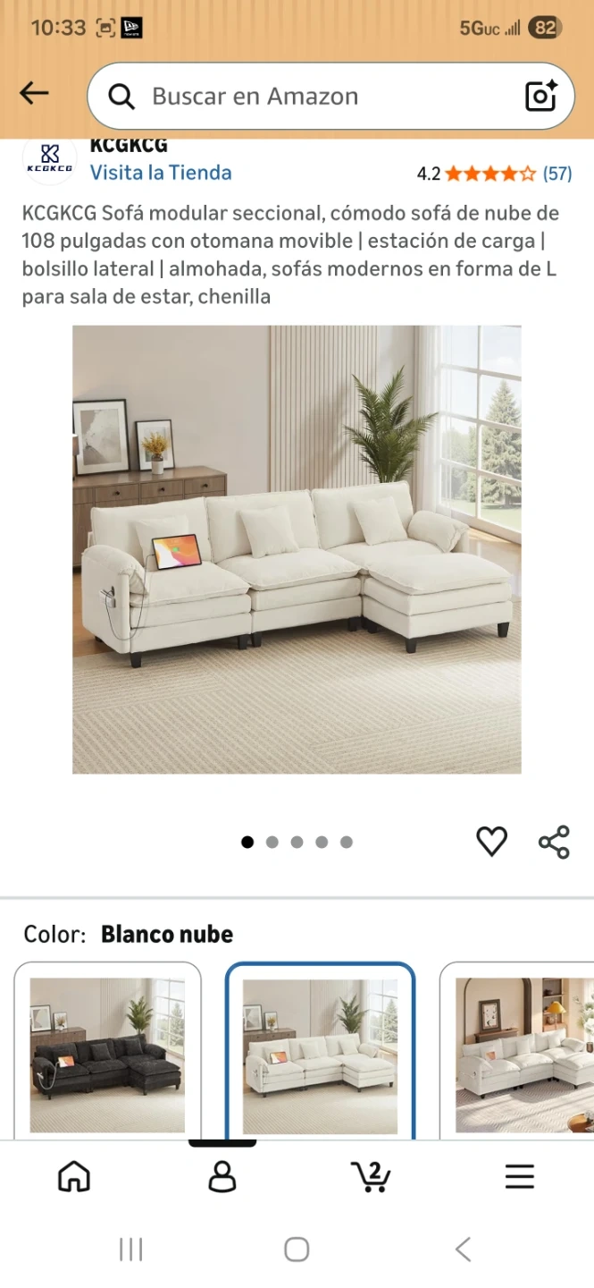 KCGKCG Sectional Sofa - White Chenille