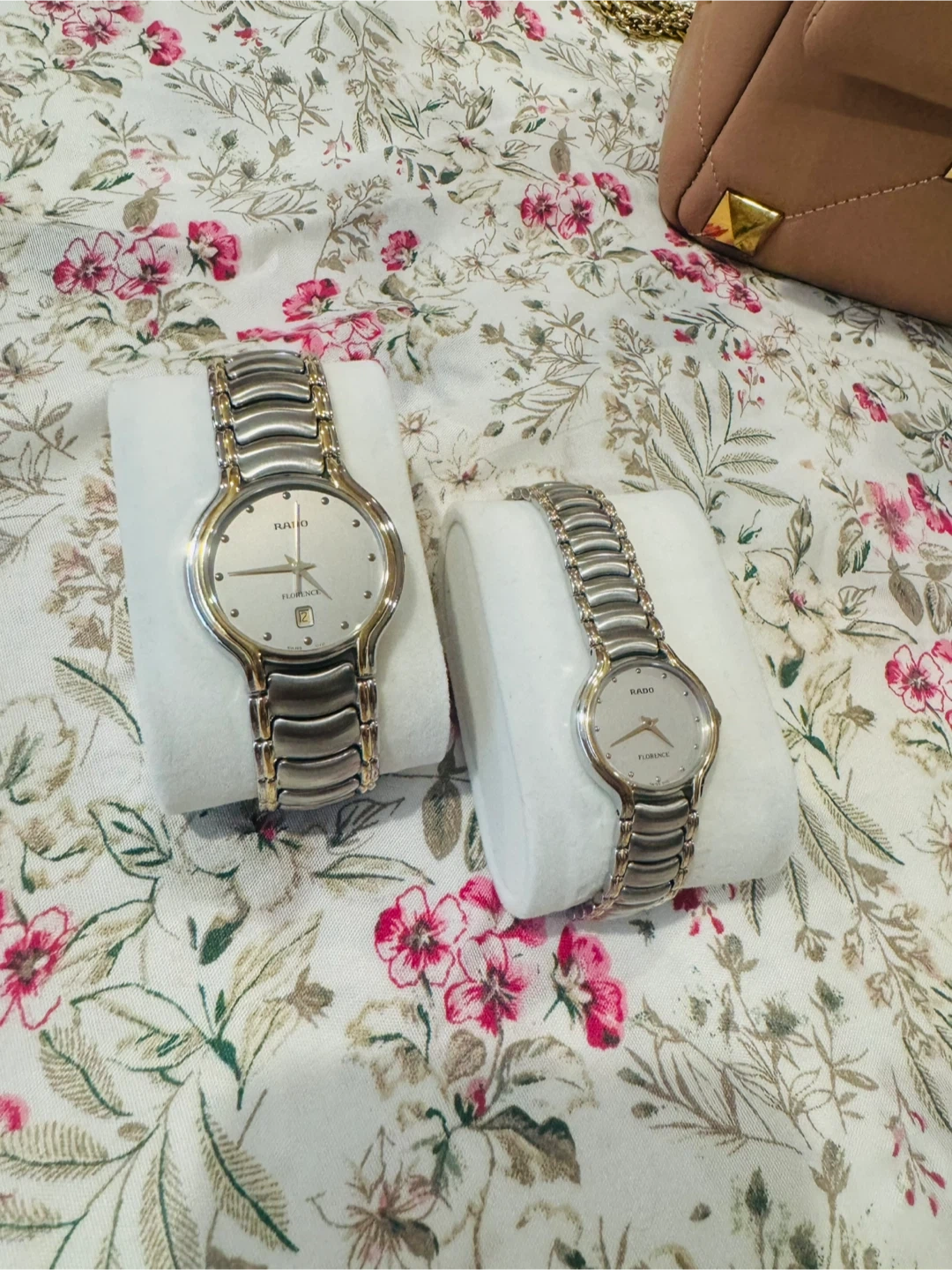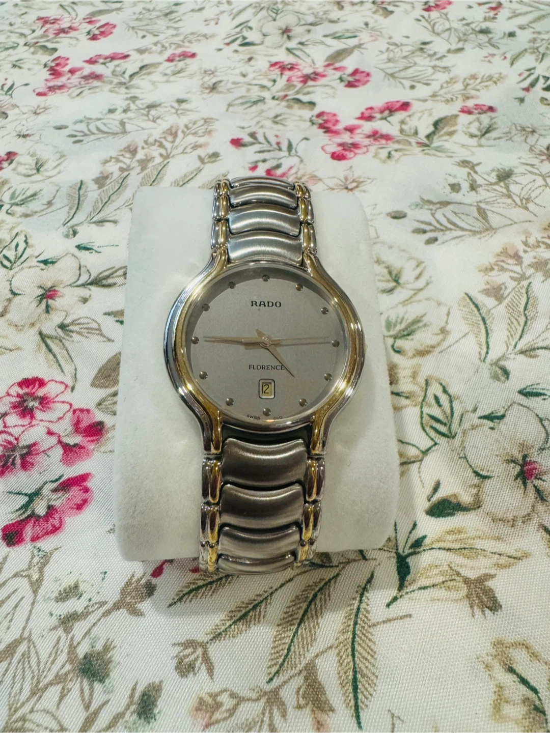 Two Rado Florence Swiss watches. Stainless steel and gold-tone accents. Features a date display on one watch. Reliable quartz movement. Price for two