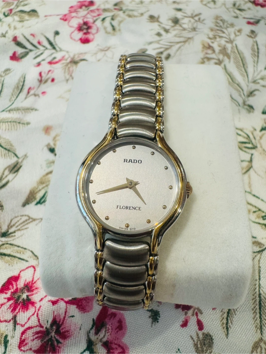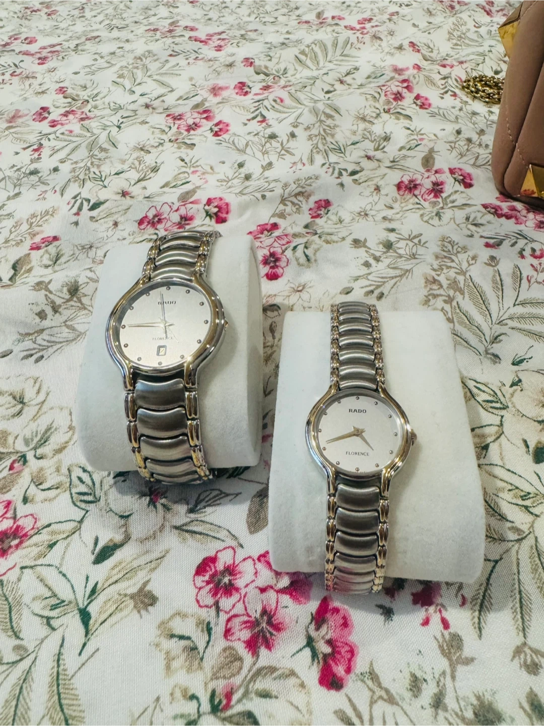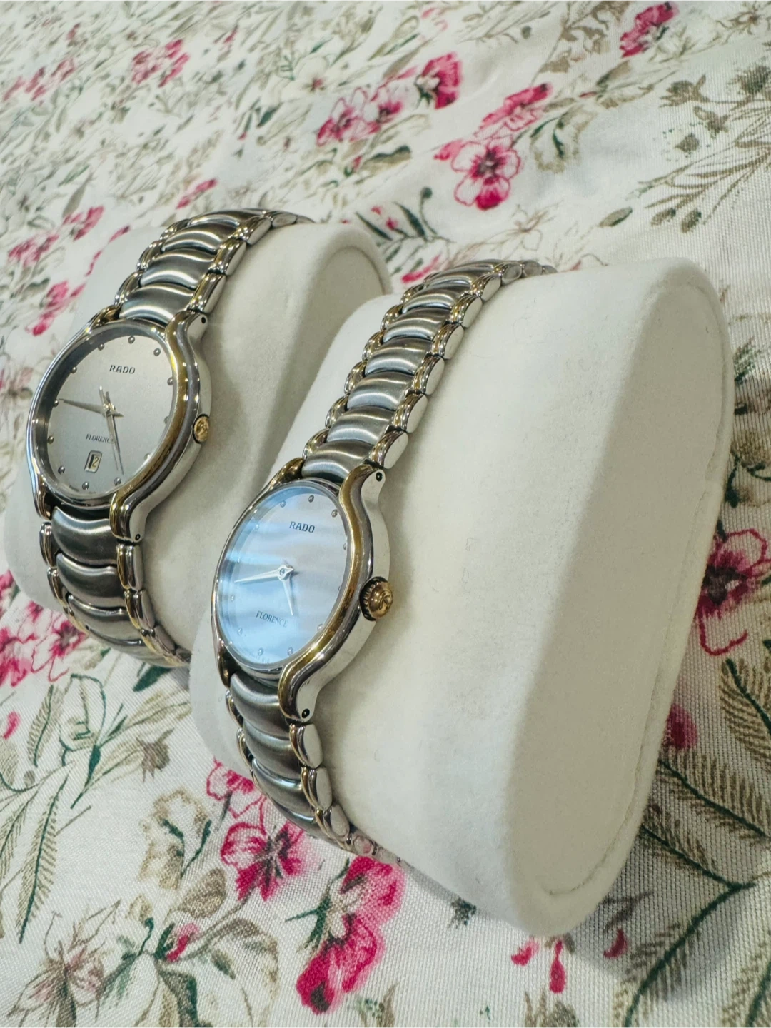 Two Rado Florence Swiss watches. Stainless steel and gold-tone accents. Features a date display on one watch. Reliable quartz movement. Price for two