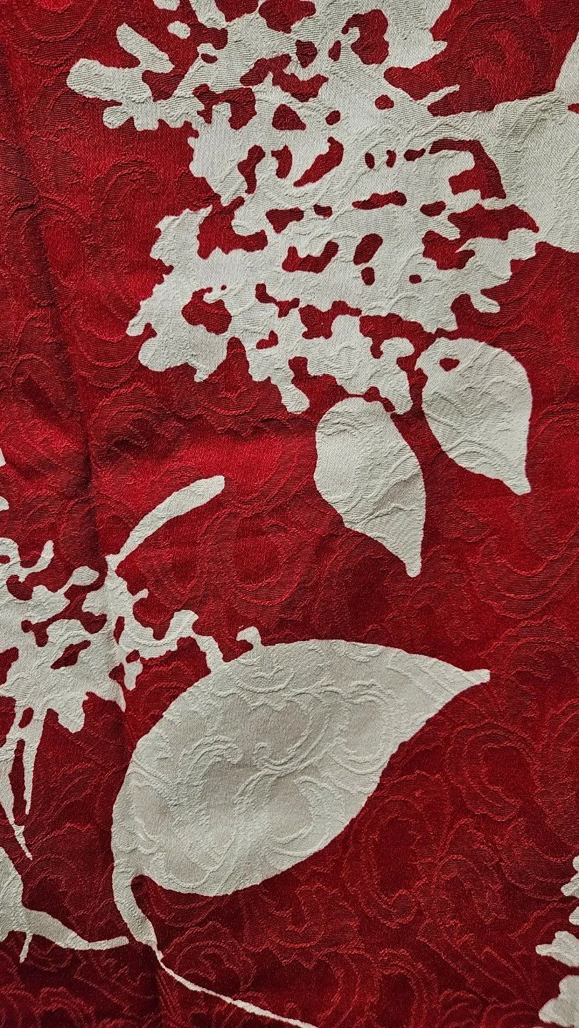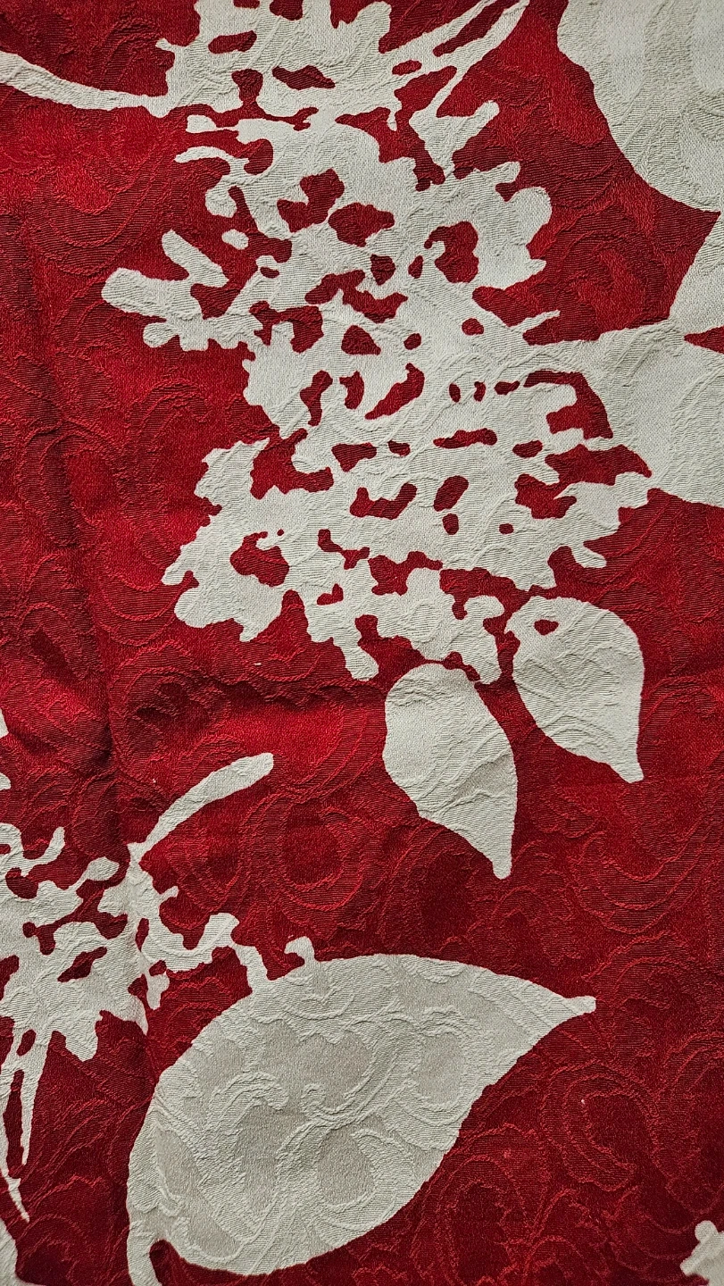 Talbots pencil skirt in a vibrant red with a contrasting cream floral print. It's a size 6, made in China. The textured fabric adds a unique touch to the classic silhouette.