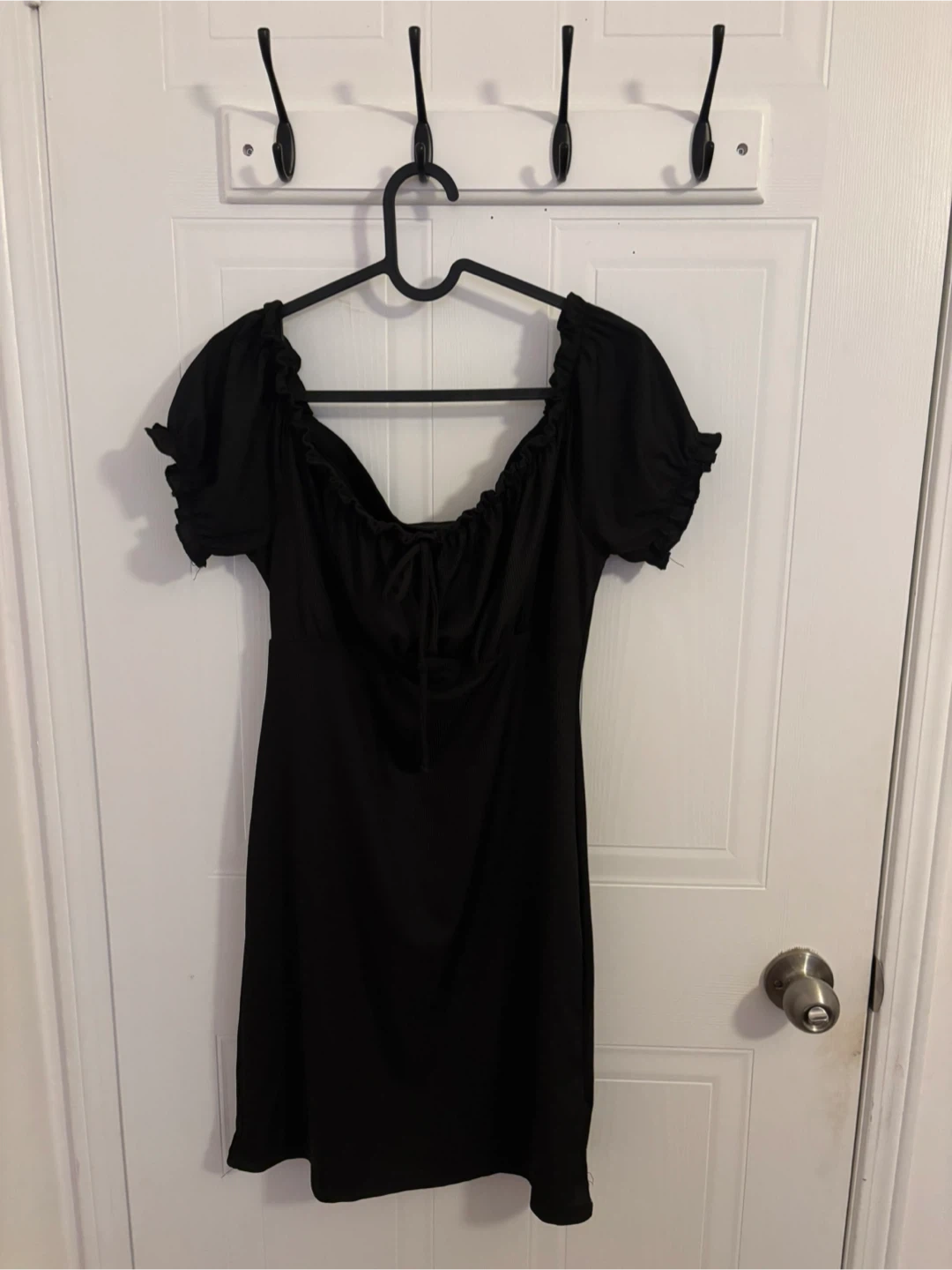 Selling a cute black dress from Streetwear Society. It's a size large and in great condition! Perfect for a night out or a casual day. It has never been used before!