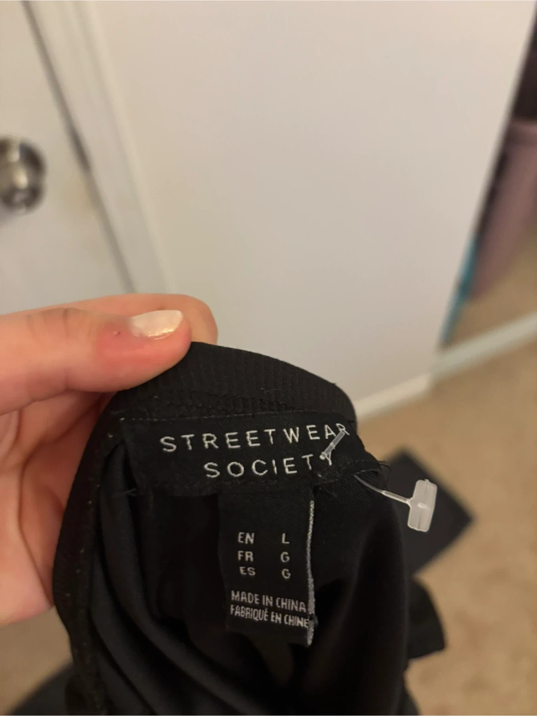 Selling a cute black dress from Streetwear Society. It's a size large and in great condition! Perfect for a night out or a casual day. It has never been used before!
