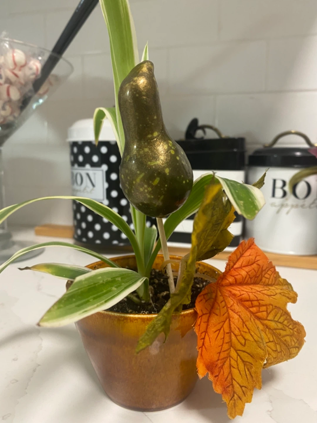 Potted Plant with Decorative Pear