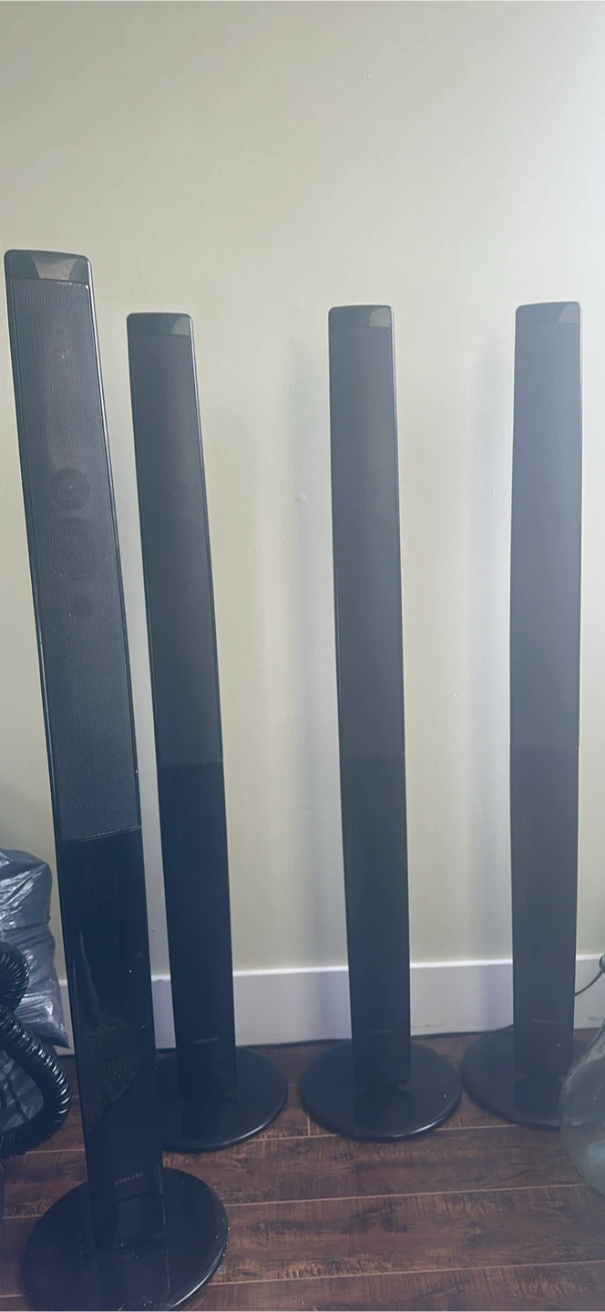 Selling a set of 4 Samsung tower speakers. The model number is PS-FR6012W. These speakers are in good condition and ready to enhance your home theatre experience!
