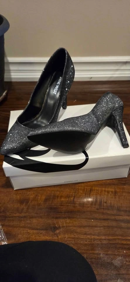 Sparkly Nine West pumps. Black glitter all over. Pointed toe, high heel. Great for a night out or special event. Super chic. Never used. Brand new in box.