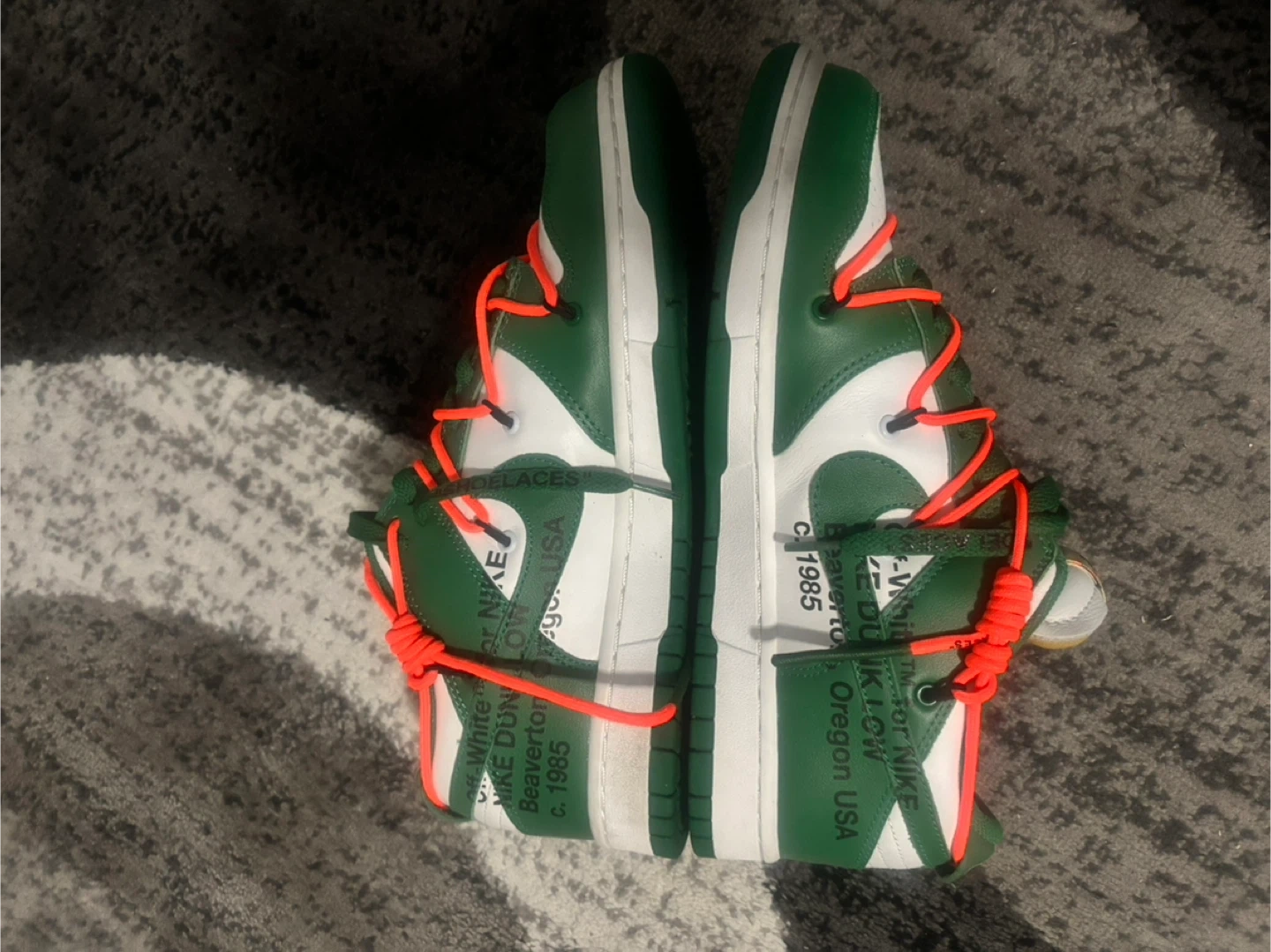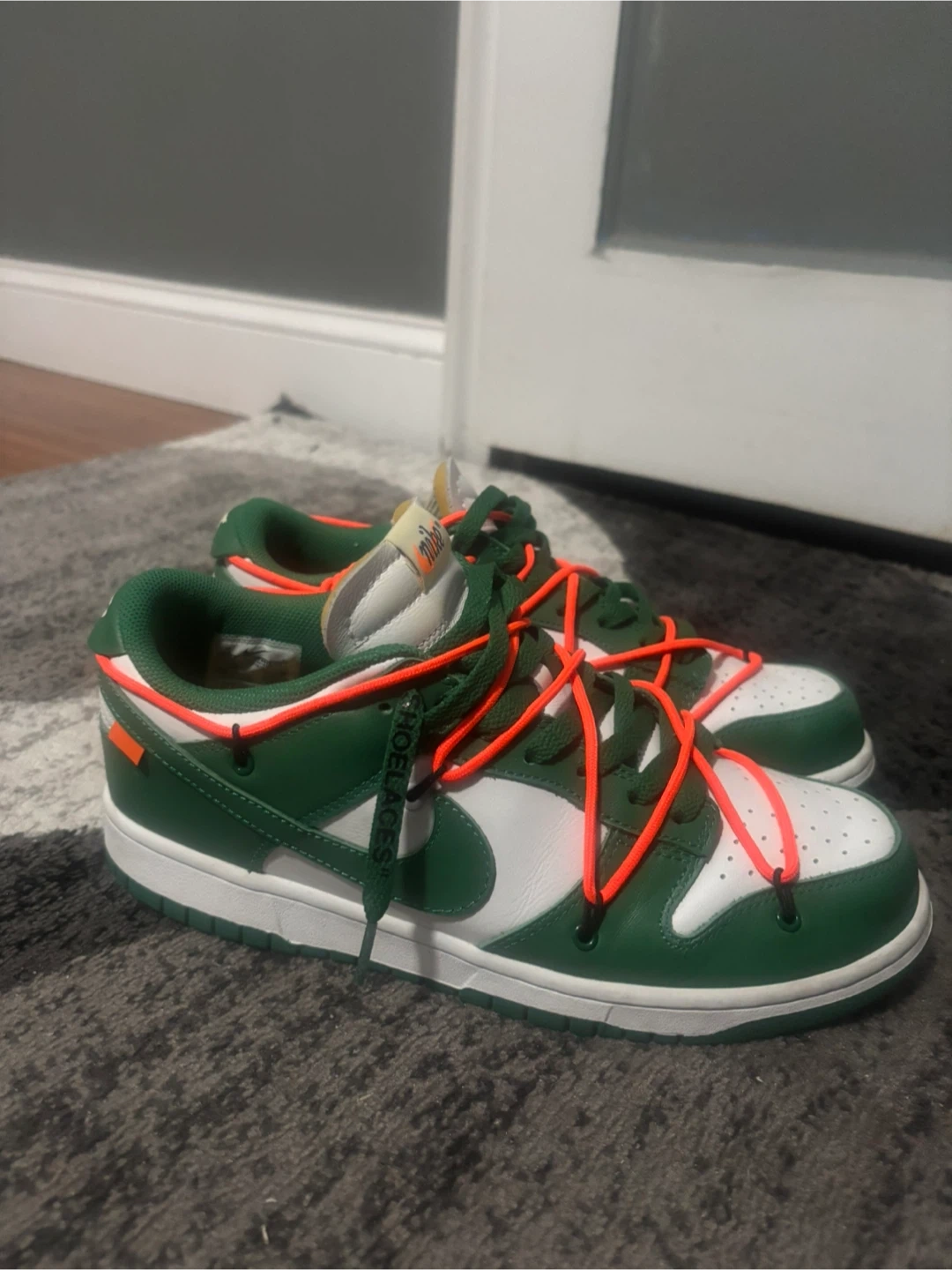 Buy & SellOff White X Nike Dunk low Pine Green 9..5Off White X Nike Dunk low Pine Green 9..5$350Off White X Nike Dunk Low Pine Green 9.5 Slightly Worn Excellent Condition Willing to Negotiate Have ReceiptSize9.5WHERE TO MEETGreen Acres Target Parking lotView MapSELLERSebbyValley Stream50 reviews0 chats·1 favorites·6 viewsSEND CHAT TO SELLERHi Sebby! I’m interested in your listing.Hi Sebby! I’m interested in your listing.Get the Karrot app to chatSign In to chat