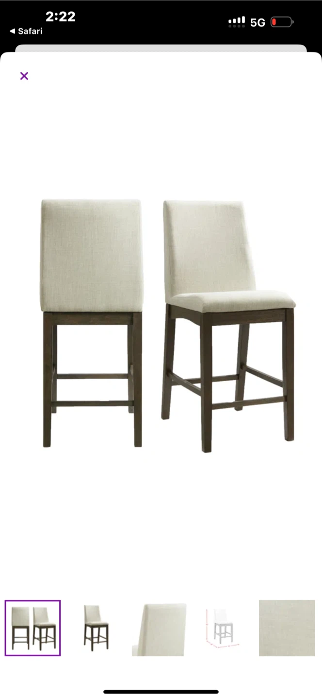 Selling a set of 4 counter height stools. They feature a neutral fabric upholstery and dark wood legs. Great for a kitchen island or bar area!
