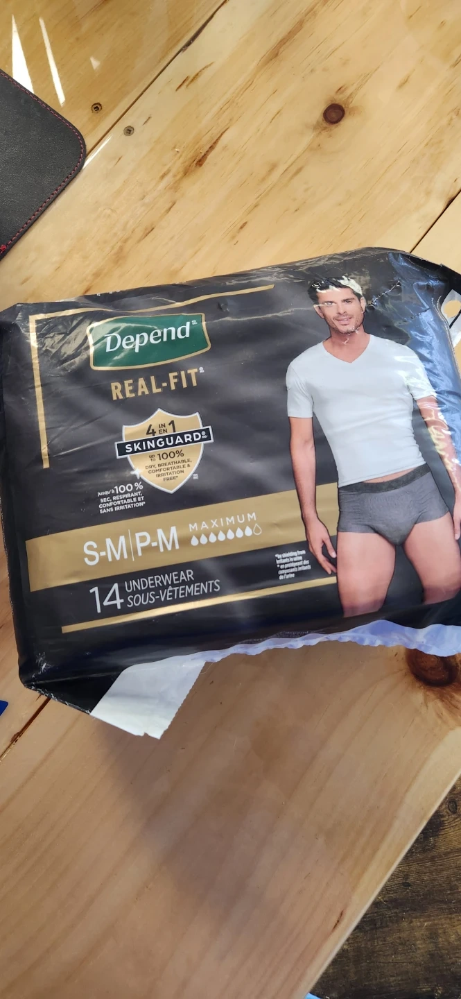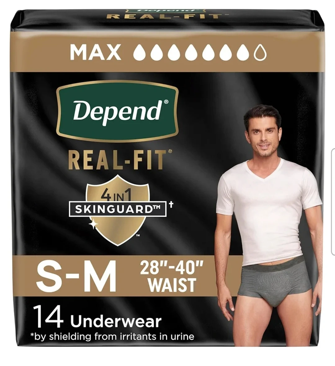 Depend Real-Fit Maximum Absorbency underwear is designed for up to 100% irritation-free wear. It features a stretch waist band and is up to 100% breathable and dry. Comes with 14 pairs in size S-M for waists 28"-40".