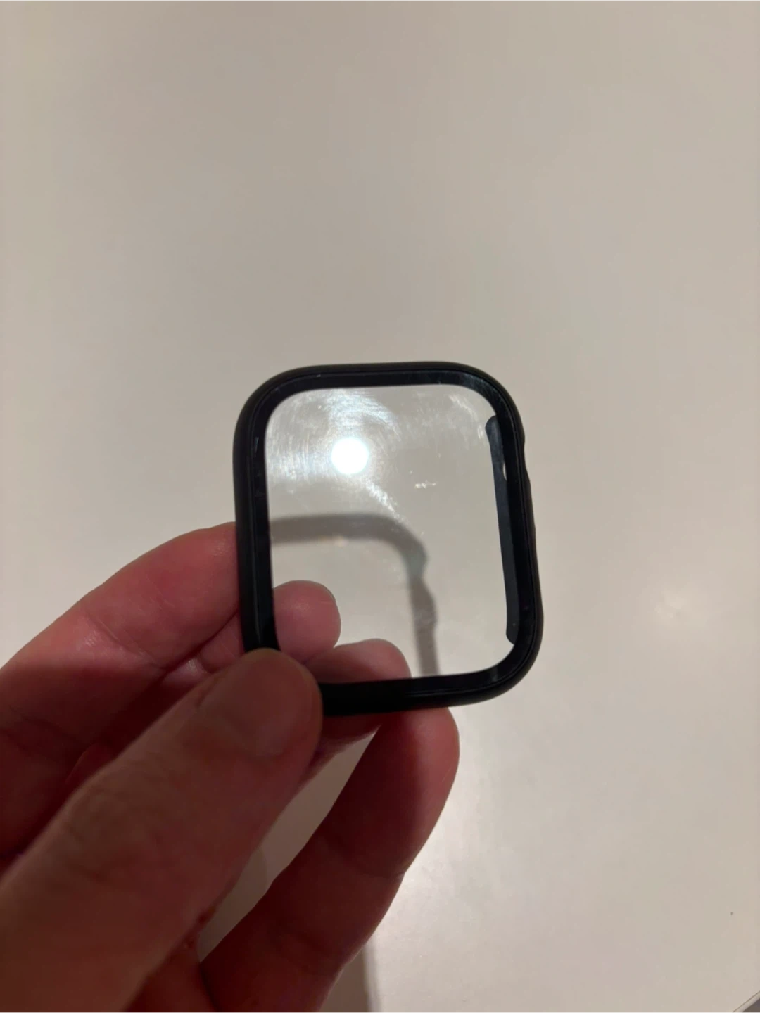 This is a black protective case for an Apple Watch 45mm. Guard against scratches and bumps to the screen. Snap-on design.