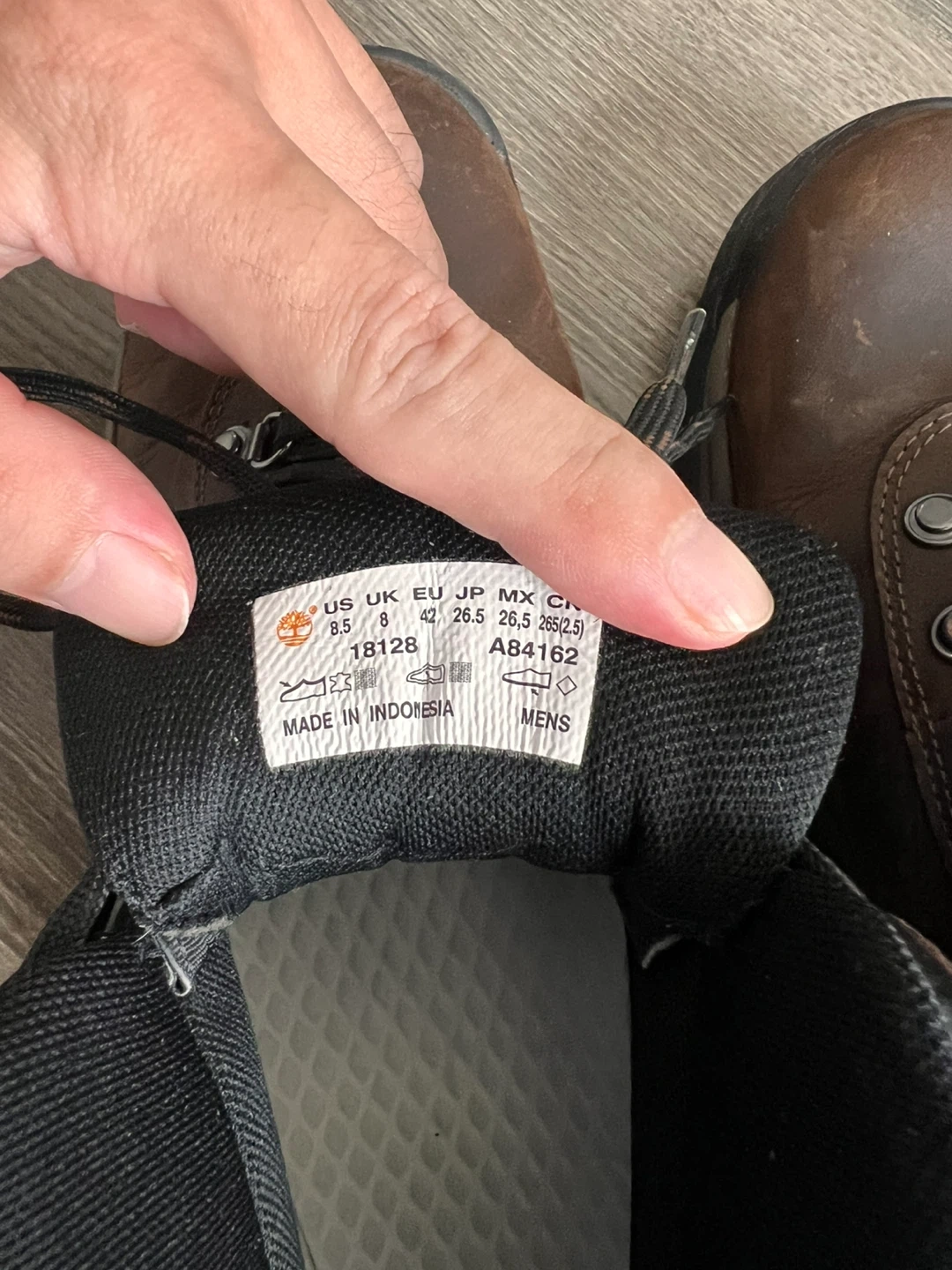Classic Timberland brown leather hiking boots. Men's size 8.5 (US). Made in Indonesia. These boots are ready for your next adventure!