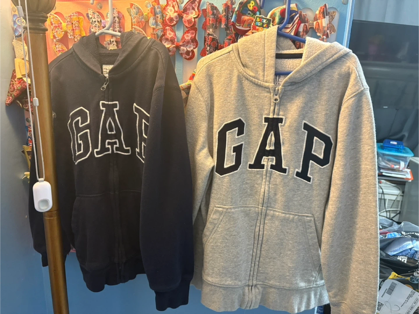 Two Gap full zip hoodies available! One is black and the other is gray. I also have a red one available.Both are in great condition and ready for a new home