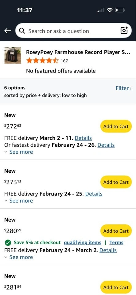 Selling a brand new RowyPoey Farmhouse Record Player Stand (3-Tier End Table). Item is completely unopened and still sealed in the original Amazon box. I purchased it from Amazon but missed the return window, so I can’t send it back — just looking to sell it instead. Originally sells for around $270+ on Amazon. Color: Black. 3-tier design with vinyl storage. Sturdy farmhouse style. Cable management hole in back. Perfect for record player, speakers, or as an end table. Never assembled. Never opened. Pickup only.