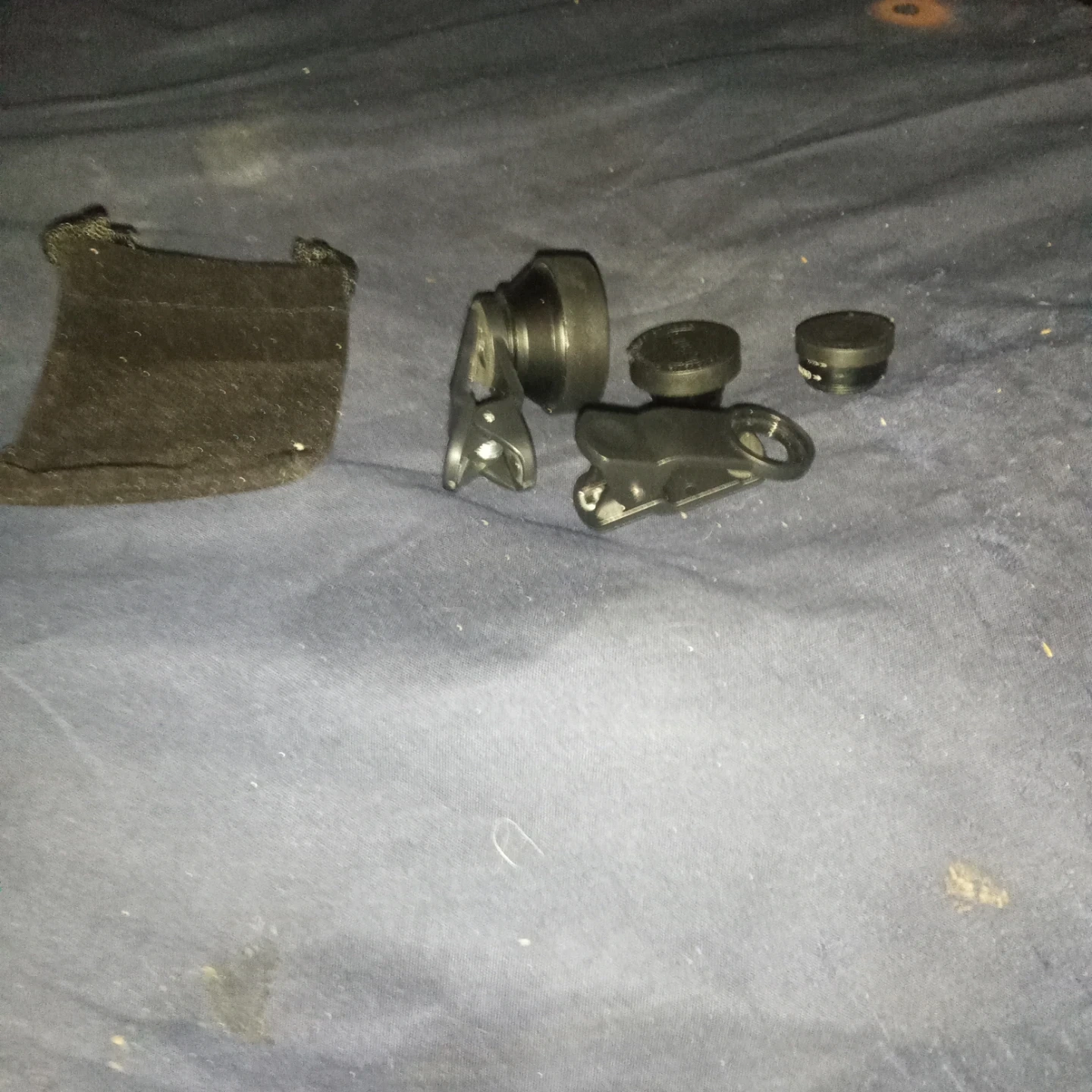 This set includes clip-on camera lenses and a small carrying pouch. Lenses are black plastic with metal accents. The clip attaches securely to most smartphones. Great for experimenting with different photo perspectives!
