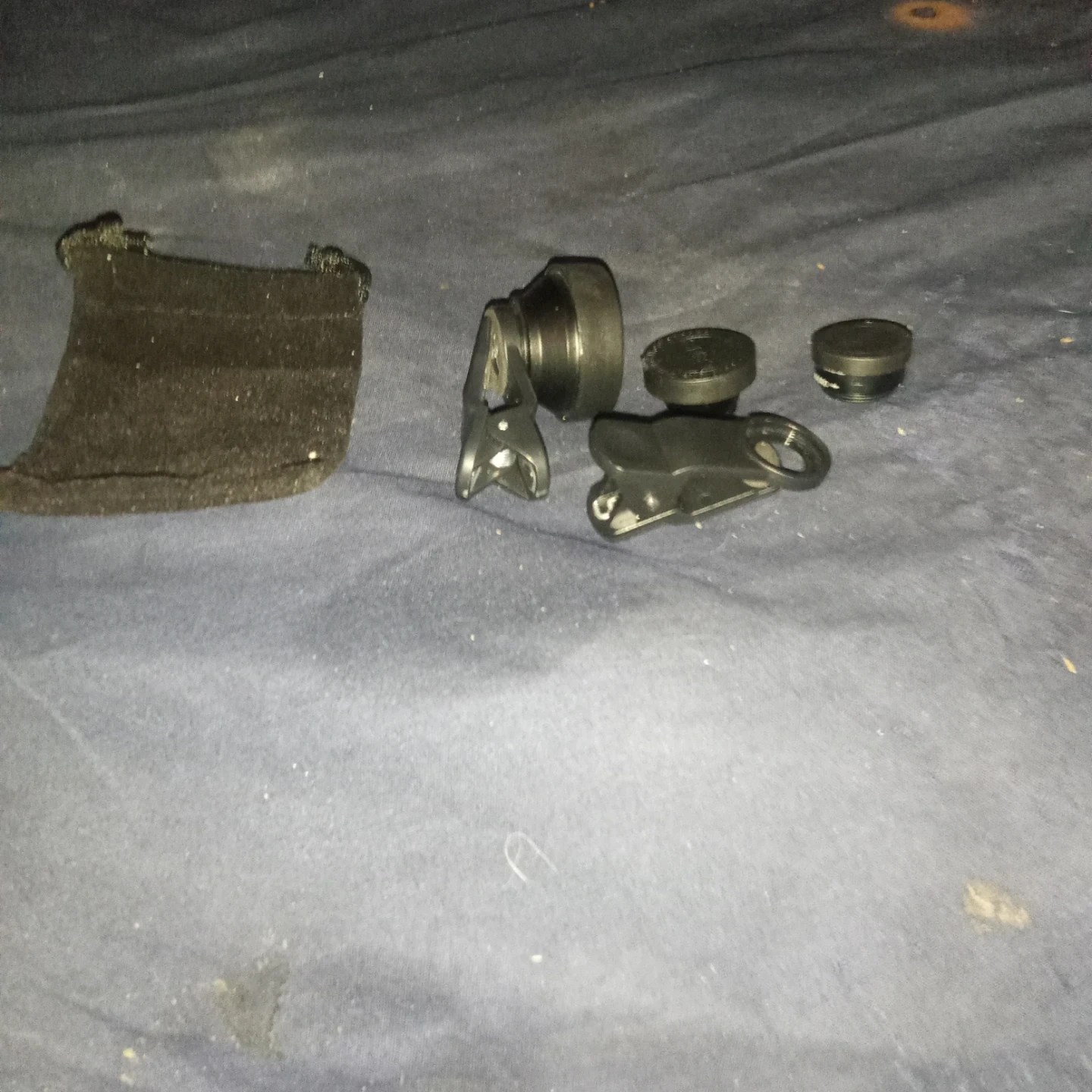 This set includes clip-on camera lenses and a small carrying pouch. Lenses are black plastic with metal accents. The clip attaches securely to most smartphones. Great for experimenting with different photo perspectives!