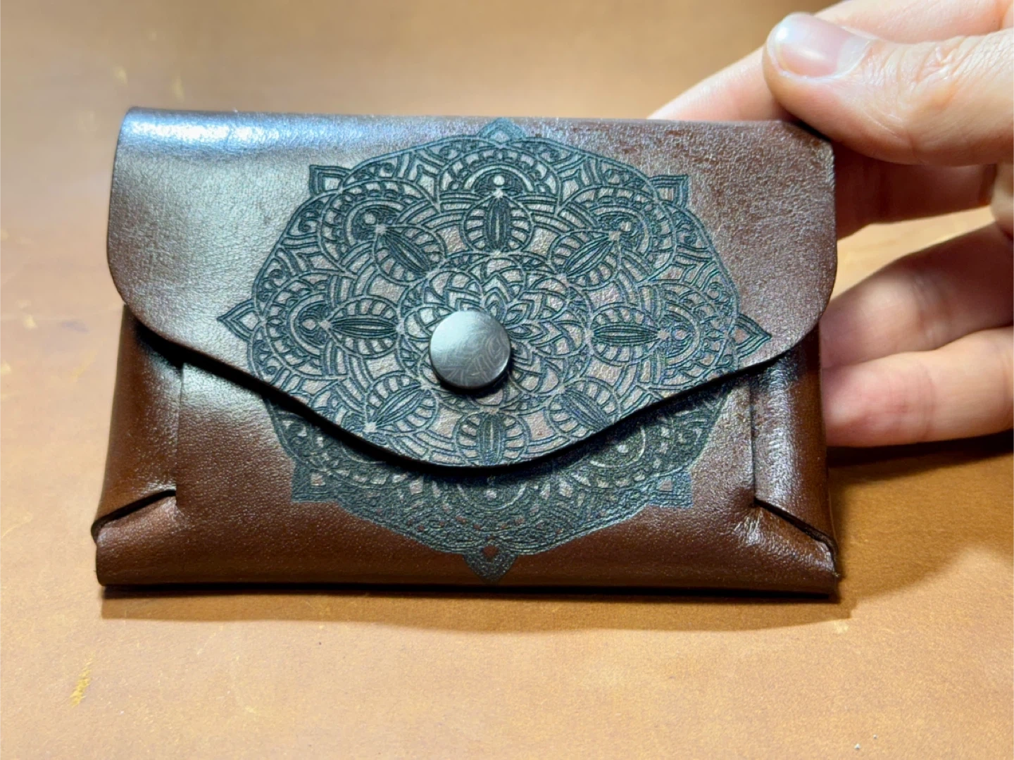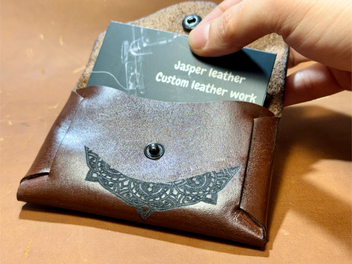 Selling a custom leather card holder from Jasper Leather! It's a beautiful brown colour with a unique design. Perfect for carrying your cards in style!