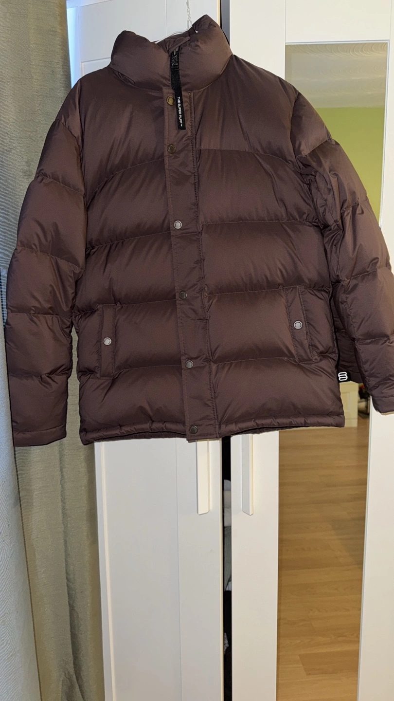 Pictures with & without flash. Aritzia The Super Puff™ cliMATTE™ down puffer jacket WITHOUT HOOD. Rich Mocha Brown colour. Water resistant. Features include zipper closure and pockets. Purchased this year, worn couple of times. Selling because the original (regular) length is long for me since I am only 5’3ish feet. You can ask me for pictures :) Bought from store at $225 excluding tax.