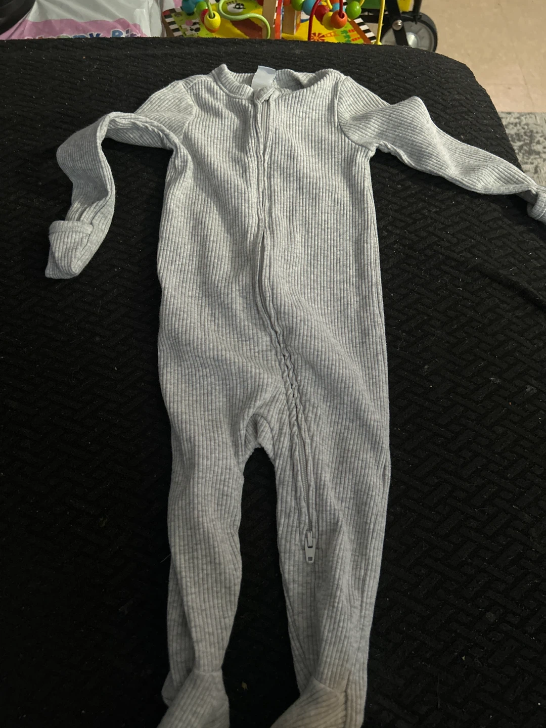 Grey Ribbed Footed Pajamas - Size 6-9 m
