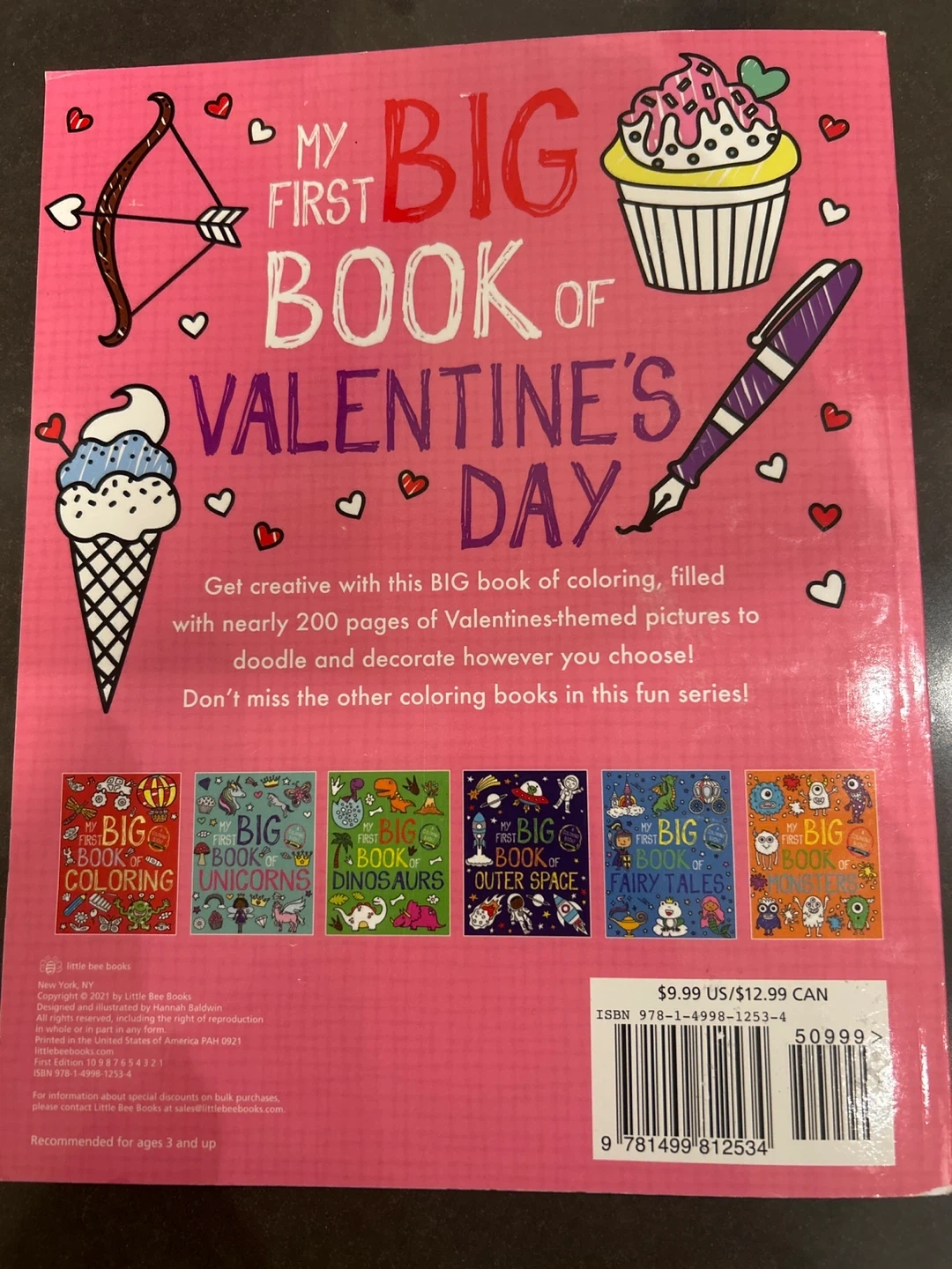 My First Big Book of Valentine's Day is a coloring book! It's filled with fun Valentine's themed pictures to colour. Perfect for little ones who are learning to colour and celebrating the season!