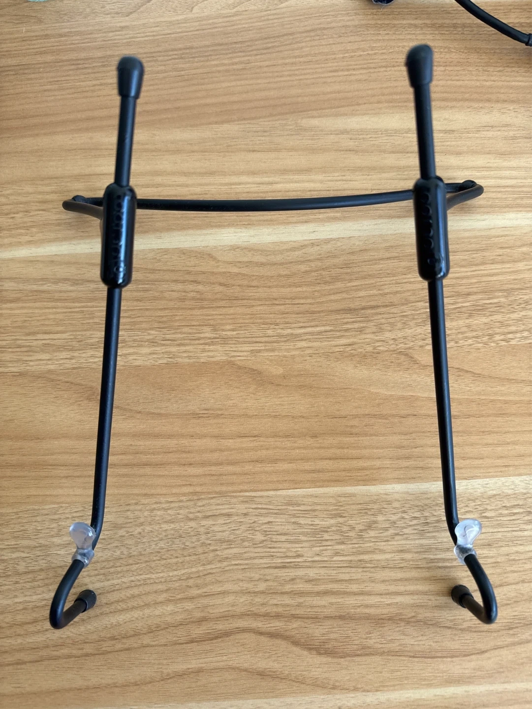 This adjustable black metal stand props up your laptop for better airflow. It's made of durable metal and features clear rubber stoppers to keep your device secure. It's useful for improving typing comfort and cooling during extended use.