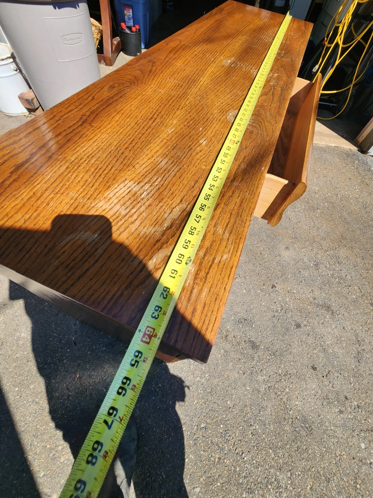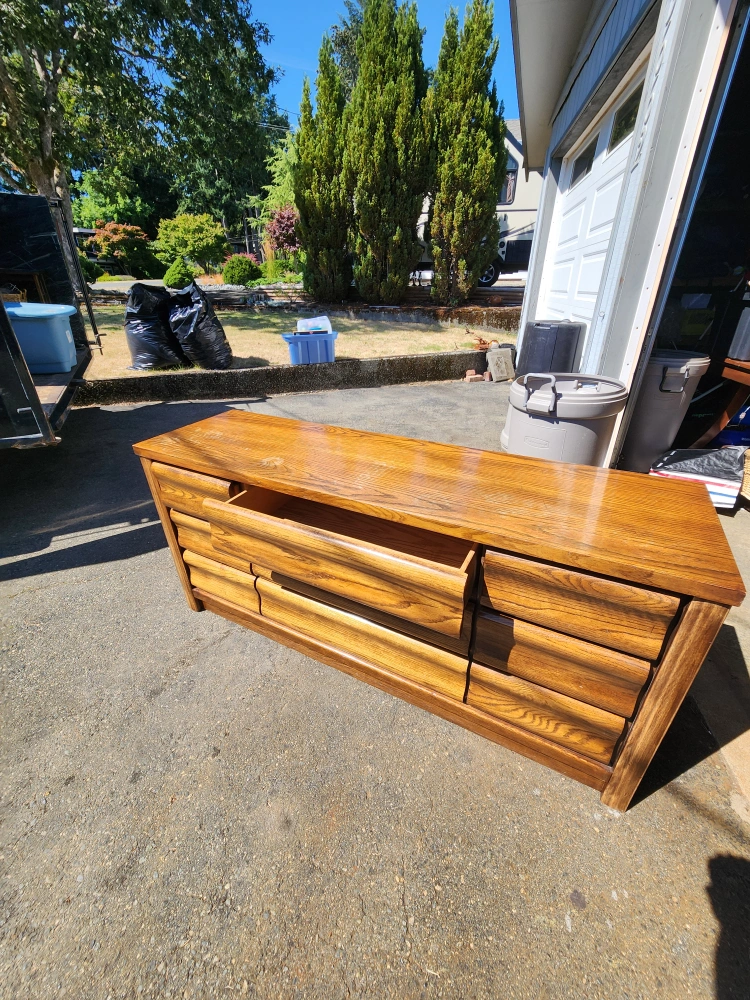 I'm selling a wood dresser. It's approximately 65 inches long and 33 inches tall. It has a beautiful wood grain finish. Perfect for adding storage and style to any room!