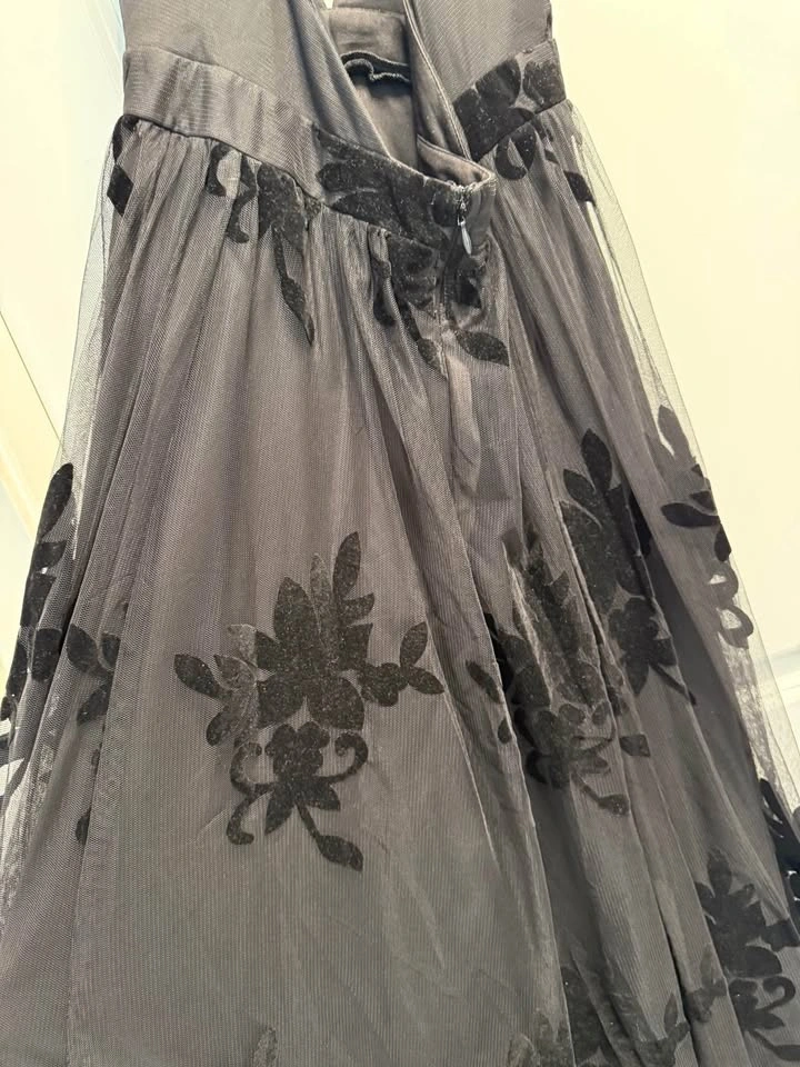 Lightweight and sheer tulle with flocked velvet floral pattern