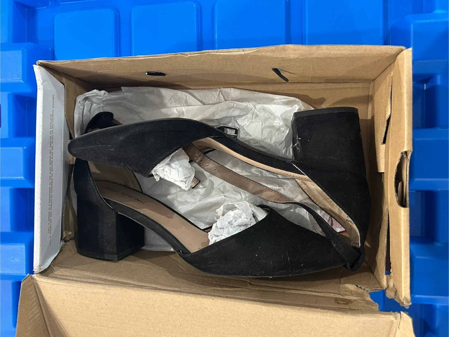 These black block heels from Spring are a stylish addition to any wardrobe. The shoes are a women's size 8.5 US. They come in their original box.