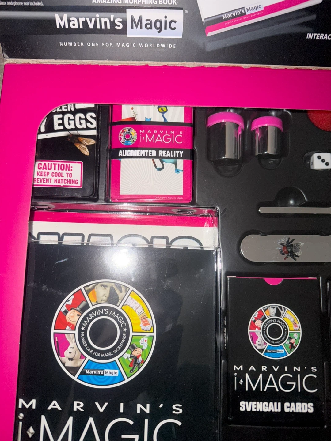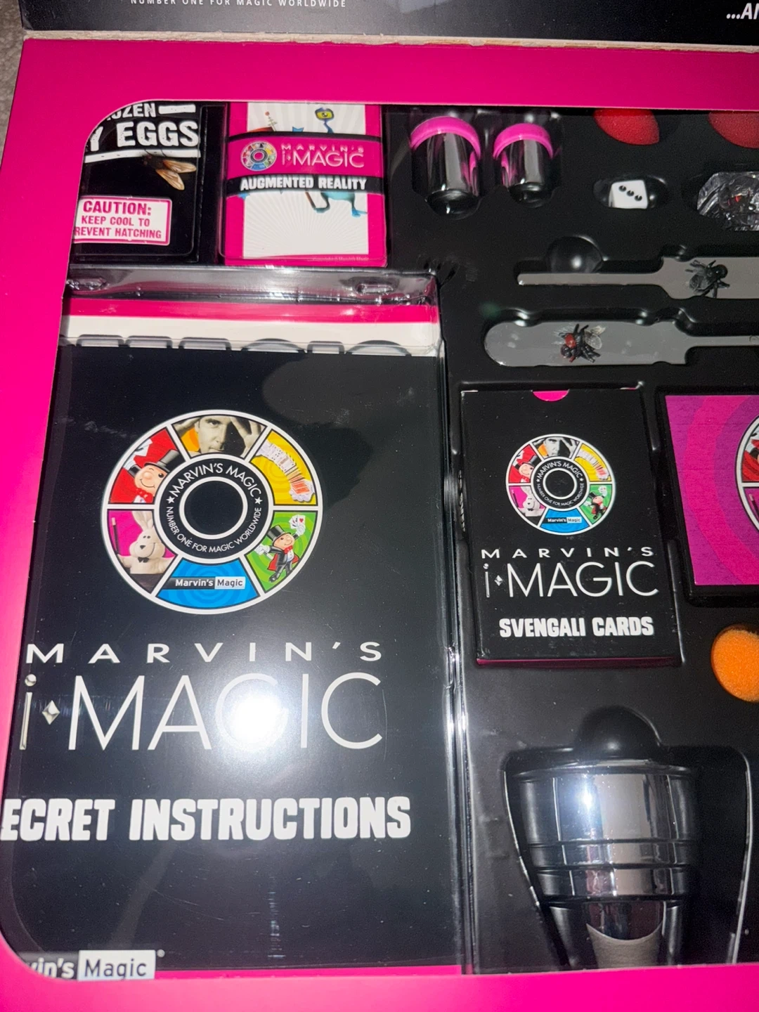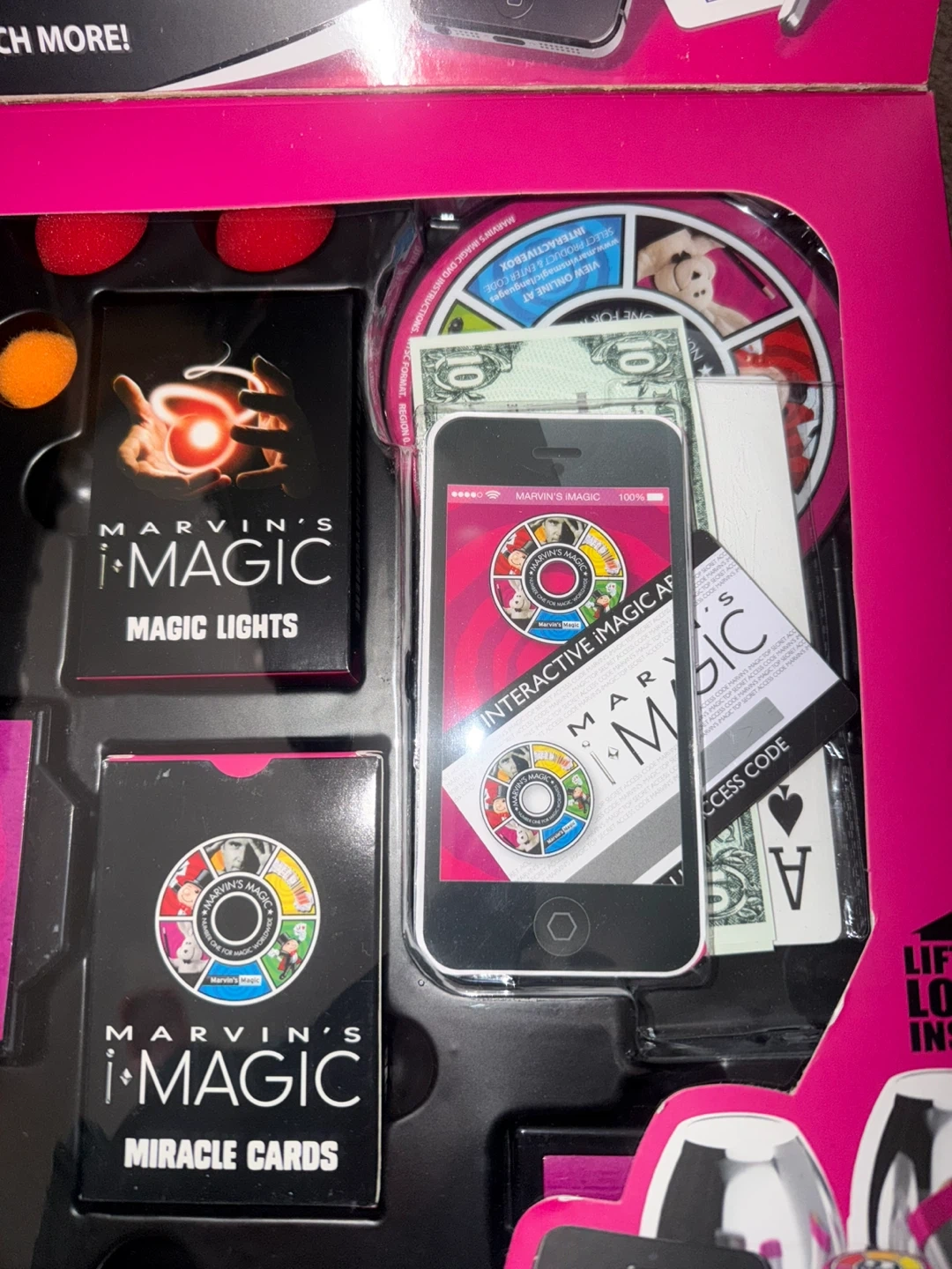 This Marvin's Magic i-Magic set includes 365 magic tricks for endless fun! It comes with magic lights, miracle cards, and secret instructions. This kit is great for aspiring magicians of all ages!
