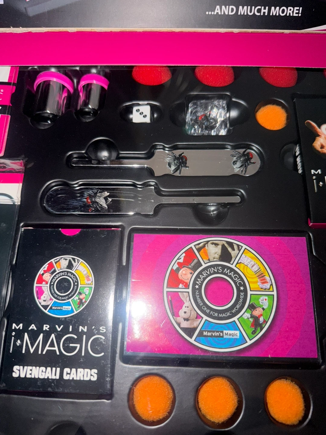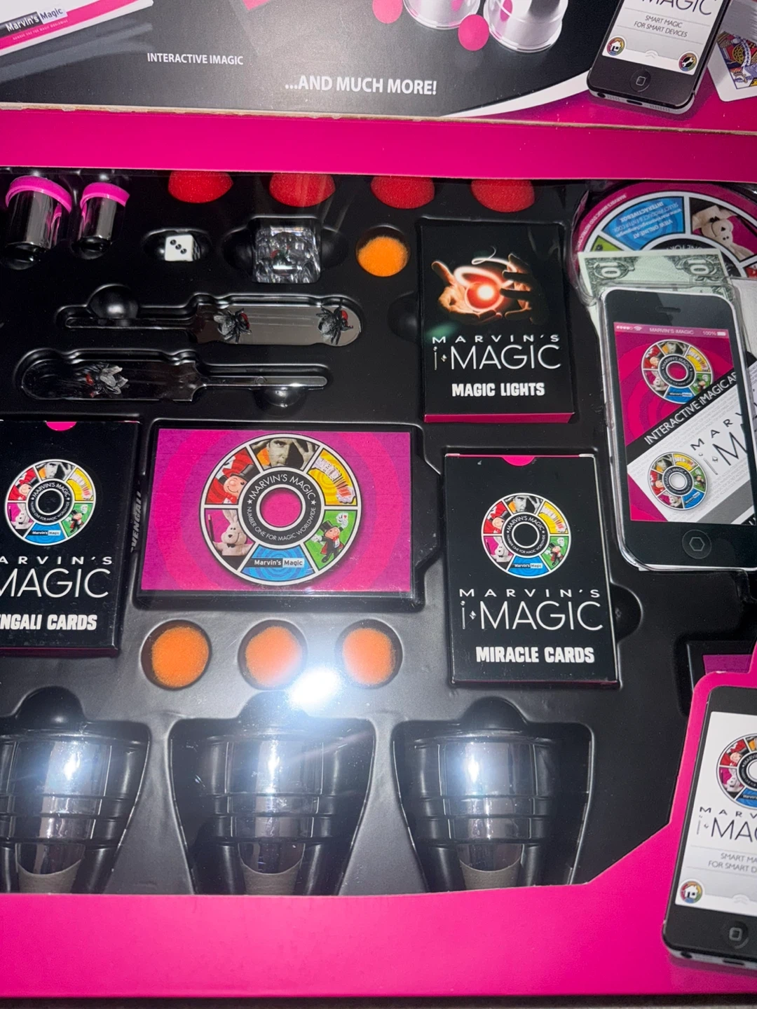 This Marvin's Magic i-Magic set includes 365 magic tricks for endless fun! It comes with magic lights, miracle cards, and secret instructions. This kit is great for aspiring magicians of all ages!