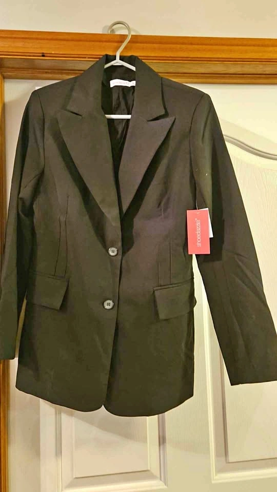 New Shoedazzle black blazer. Still has tags on it. Has two buttons and two front pockets. Super versatile for work or going out!