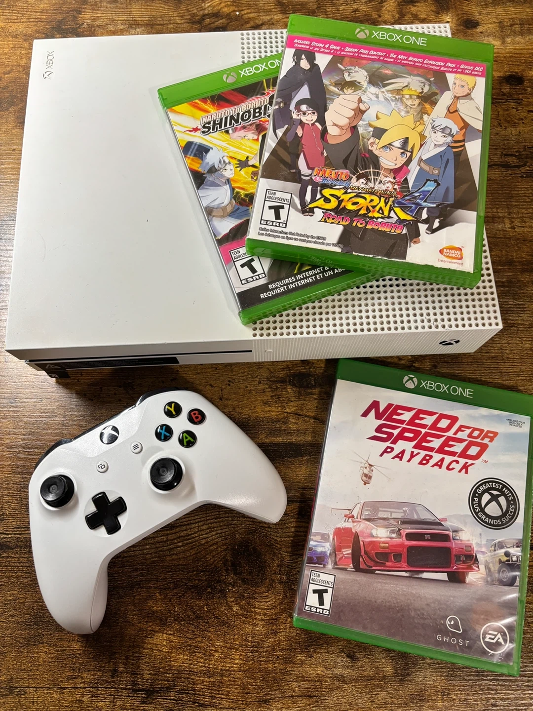 Selling an Xbox One S console 1TB in great condition! Includes a controller and three games: