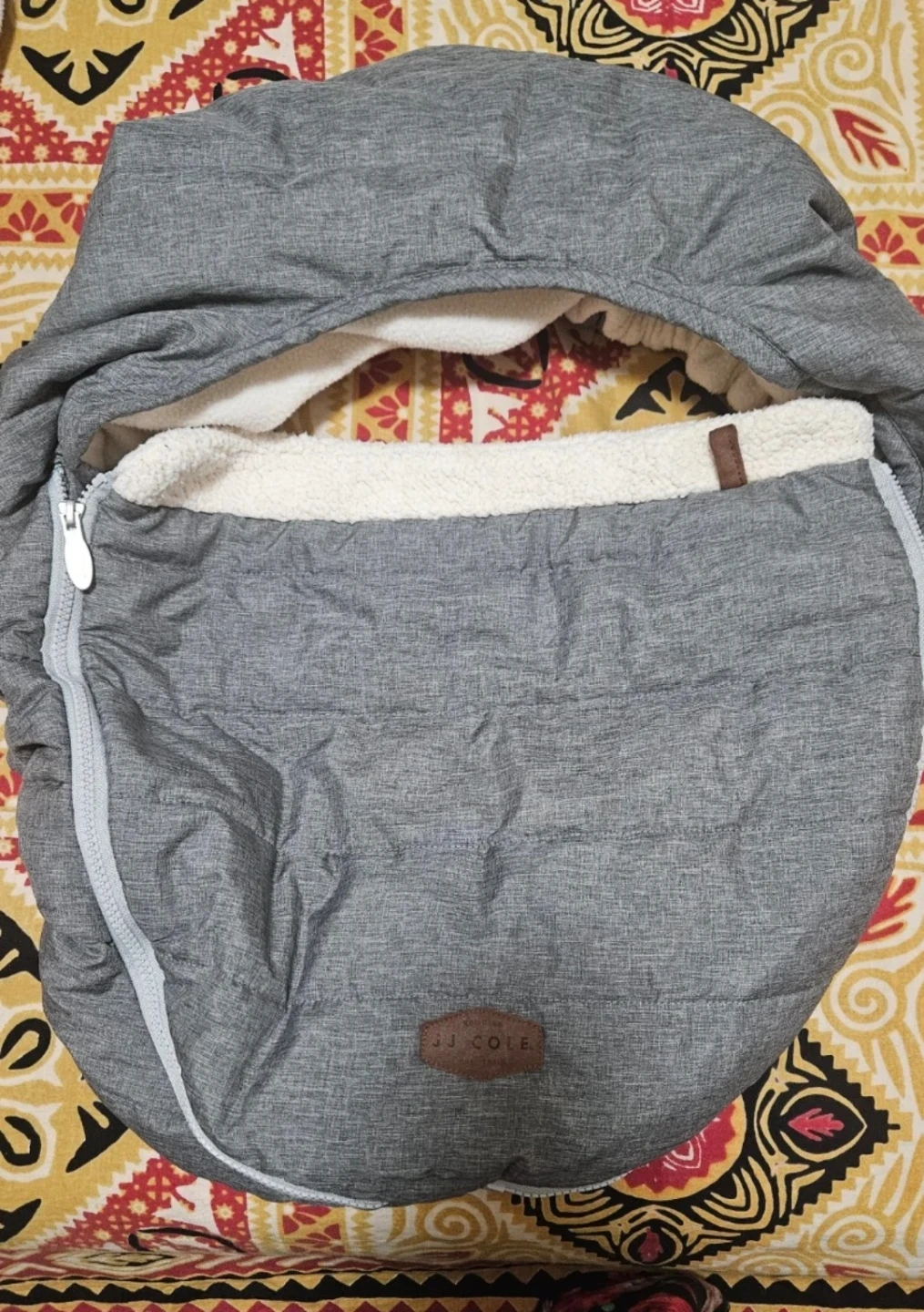 Keep your little one cozy with this JJ Cole car seat cover! It's in great condition and perfect for those chilly Canadian days. The soft interior lining will keep your baby snug and warm during car rides.