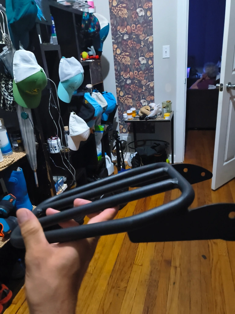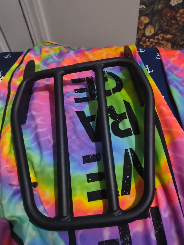 I am selling a motorcycle luggage rack in black. It appears to be in good condition and ready to be installed on your bike