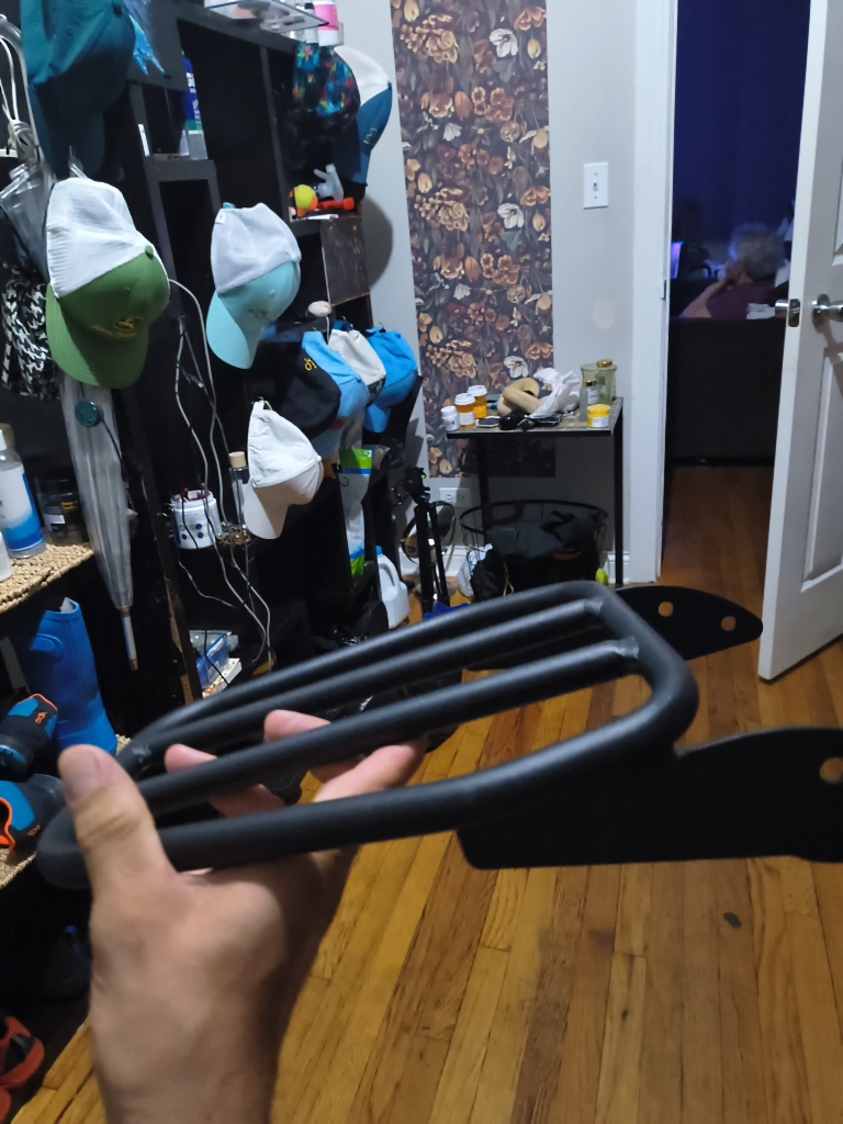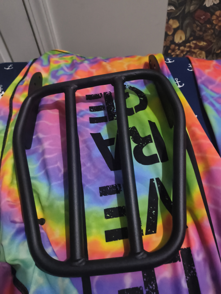 I am selling a motorcycle luggage rack in black. It appears to be in good condition and ready to be installed on your bike