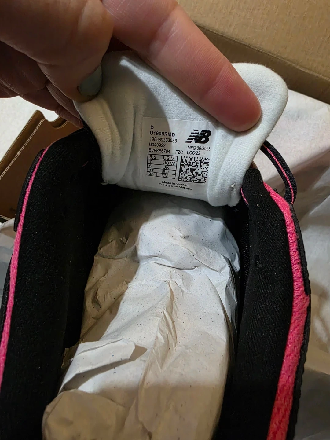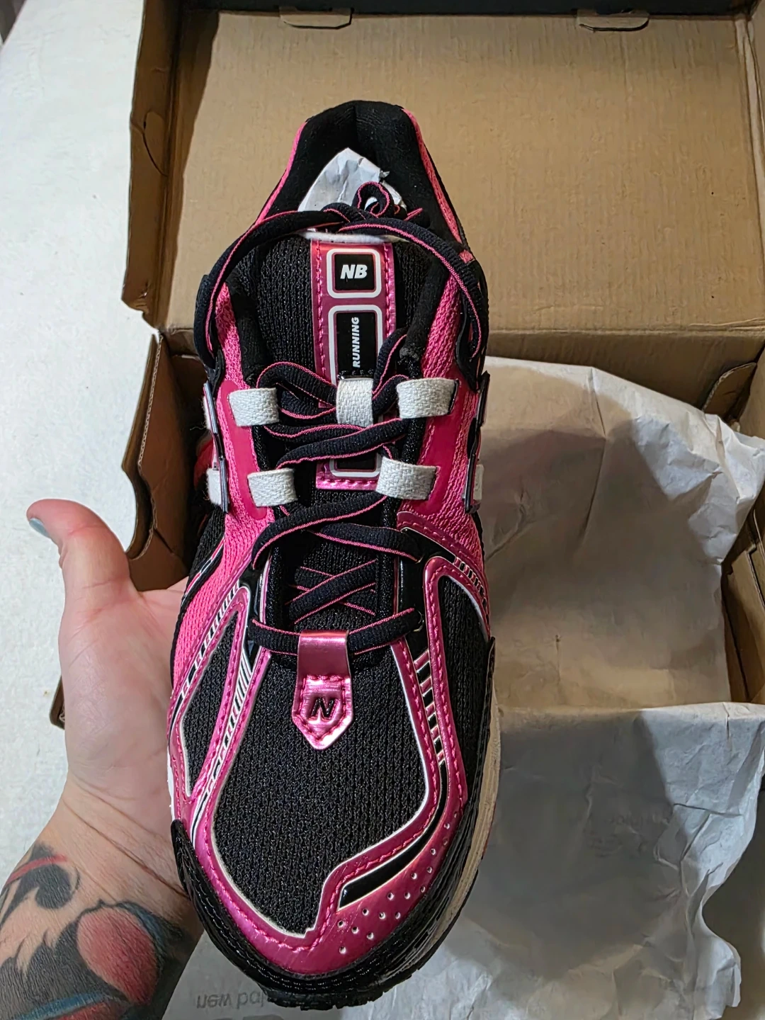 Selling a pair of New Balance 1906R running shoes in a vibrant pink and black colorway! These are a women's size 5.5 US. They come with the original box.