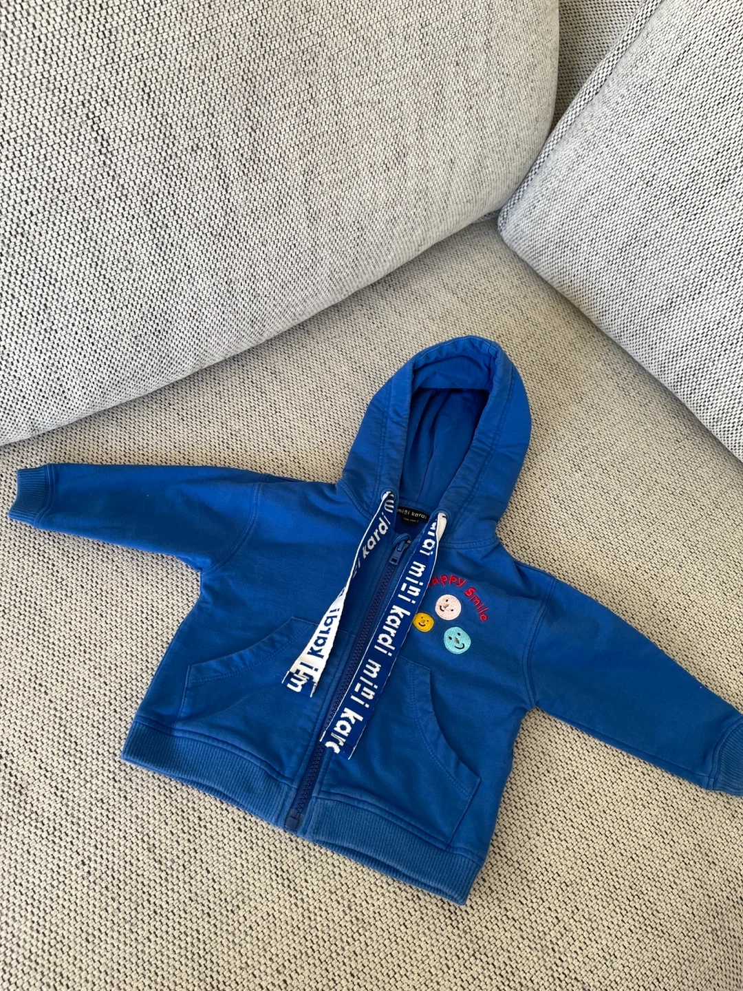 Mini Kardi Blue Hoodie with Happy Smile Embroidery