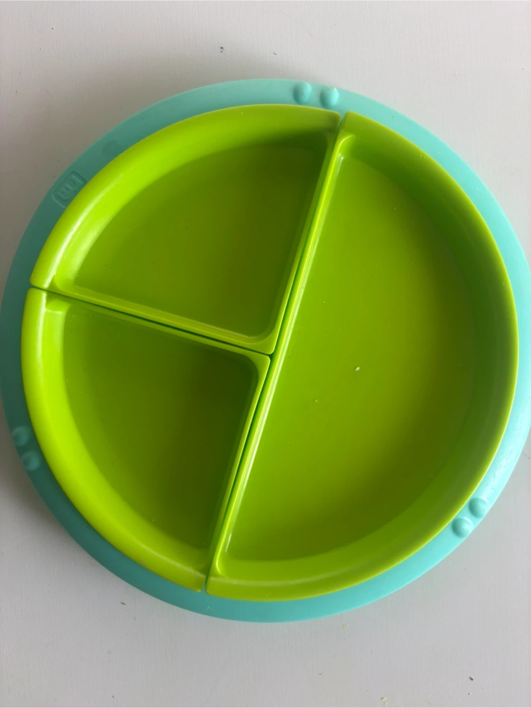 Selling a Munchkin toddler plate in great condition! It's perfect for little ones learning to eat on their own. The plate is divided into sections, making it easy to serve a variety of foods. The bright green and blue colours are sure to appeal to your child!