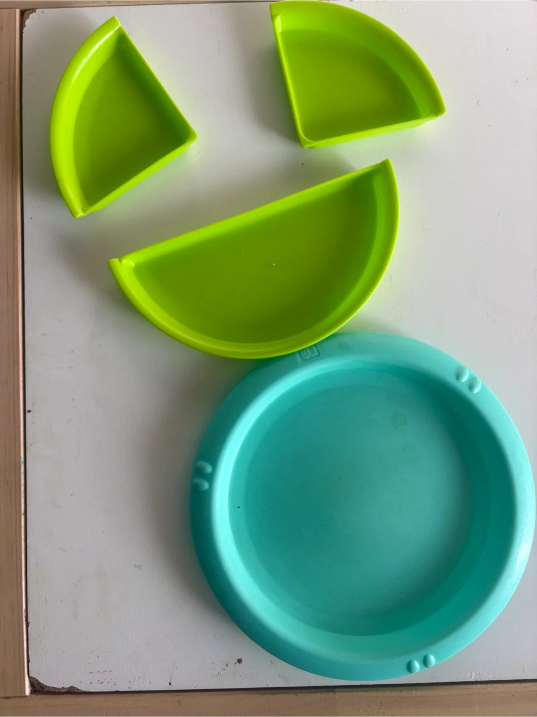 Selling a Munchkin toddler plate in great condition! It's perfect for little ones learning to eat on their own. The plate is divided into sections, making it easy to serve a variety of foods. The bright green and blue colours are sure to appeal to your child!