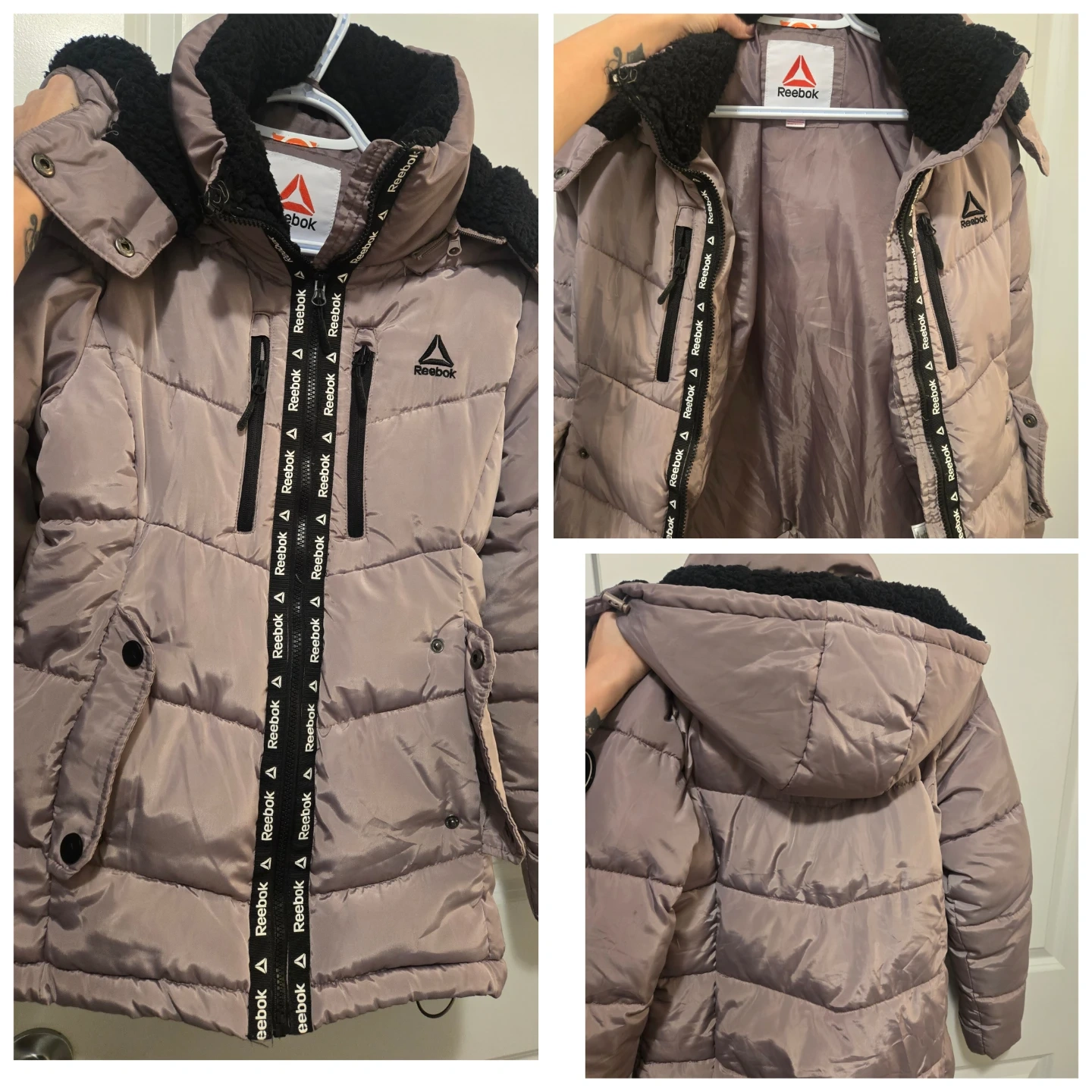 Selling a Reebok puffer jacket! It's a stylish and warm jacket, perfect for the colder weather. The jacket features the Reebok logo and design details. It looks to be in great condition and ready to wear!