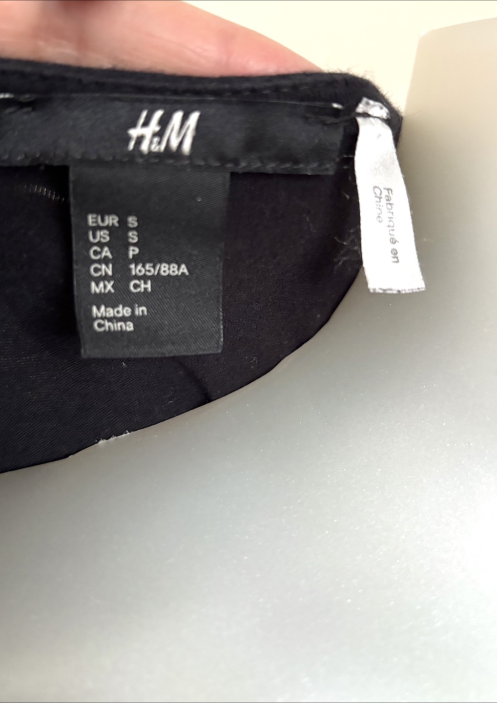 This H&M black tank top features a delicate lace trim along the neckline.