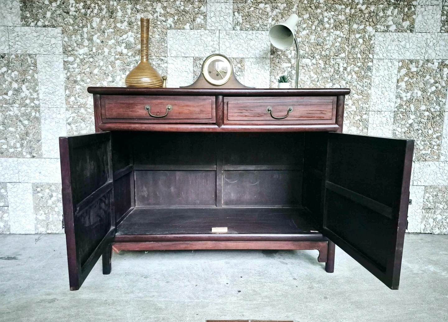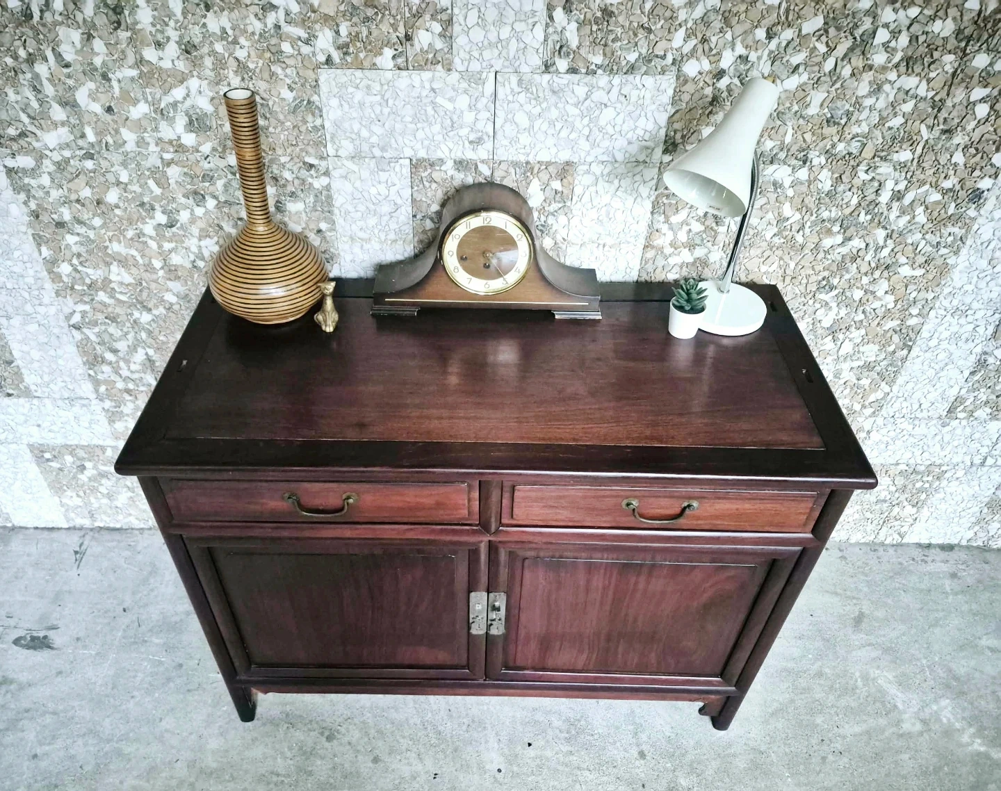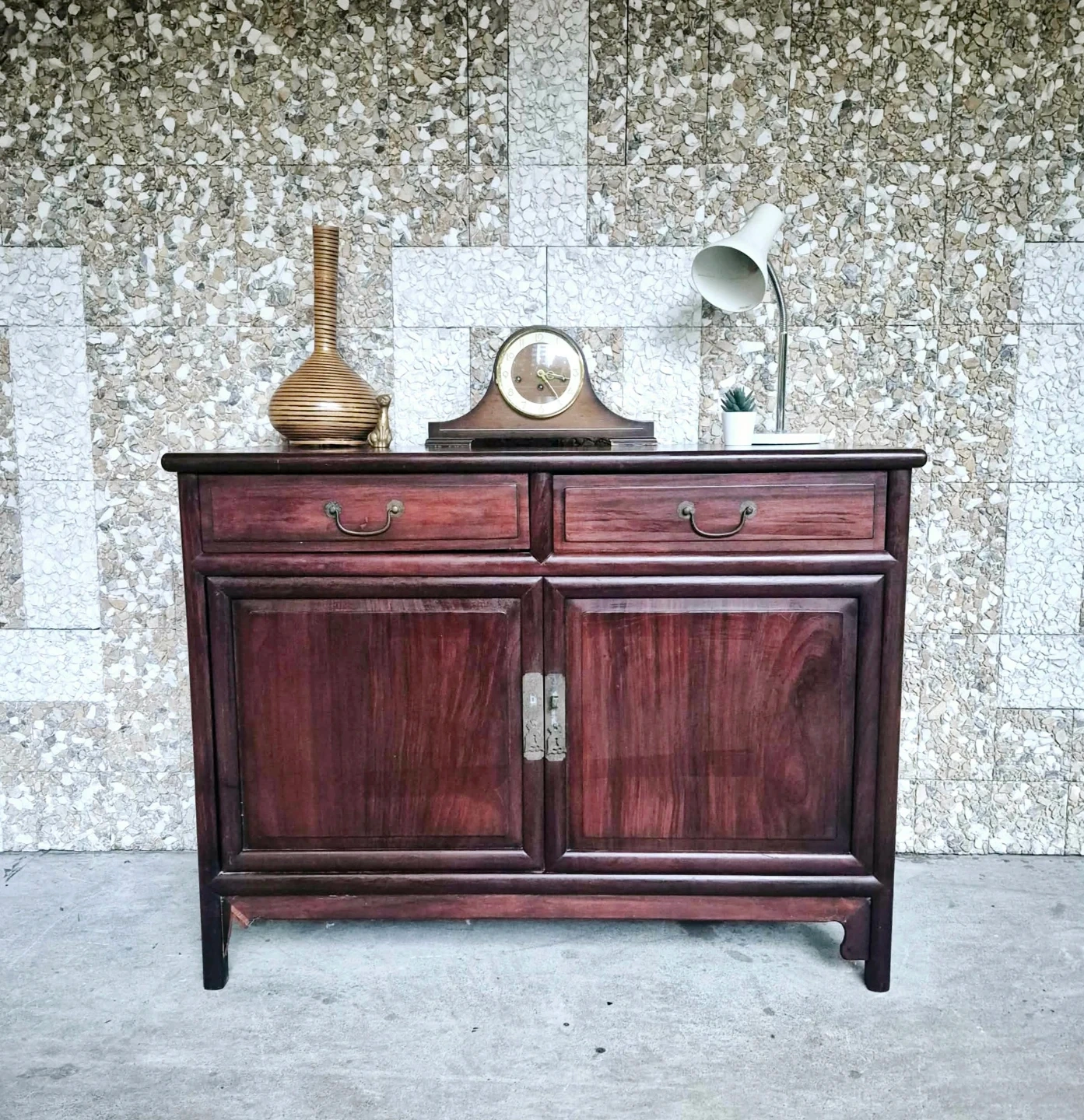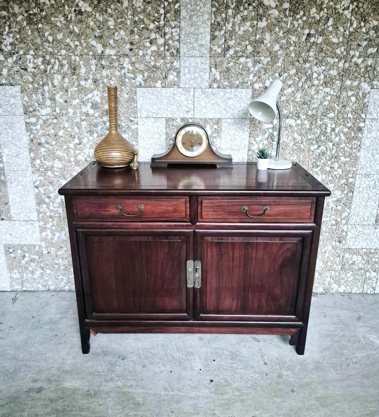 Vintage Solid Rosewood Two Door Cabinet With Brass Accents