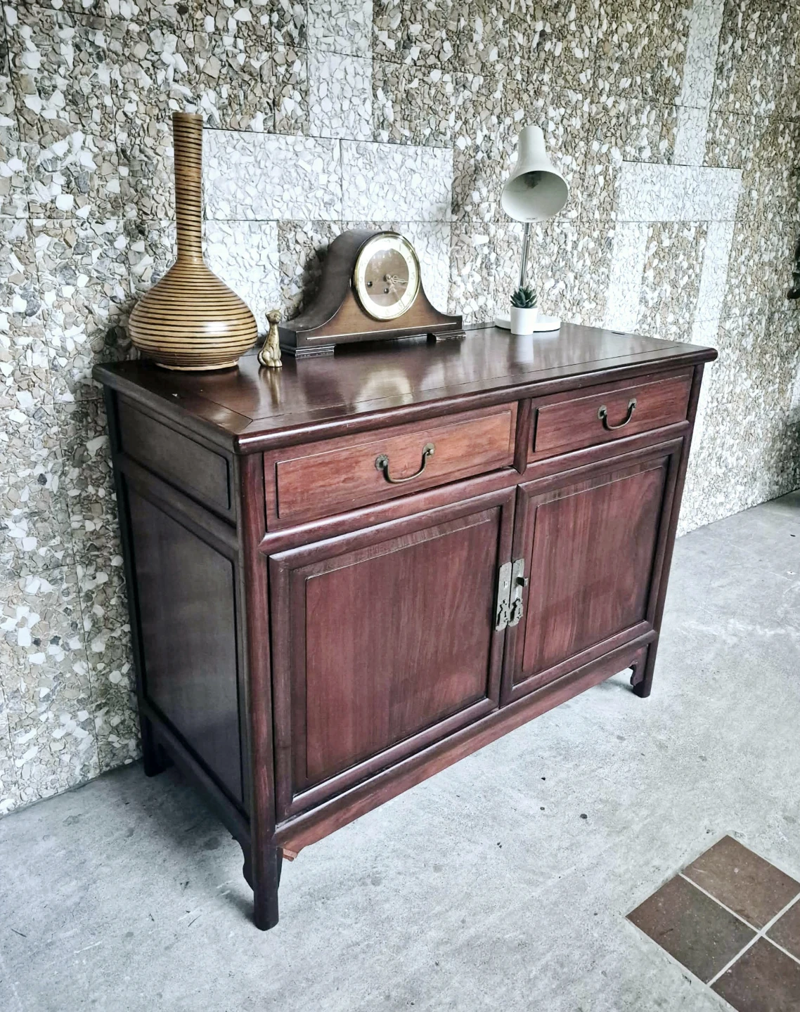 Vintage Solid Rosewood Two Door Cabinet With Brass Accents