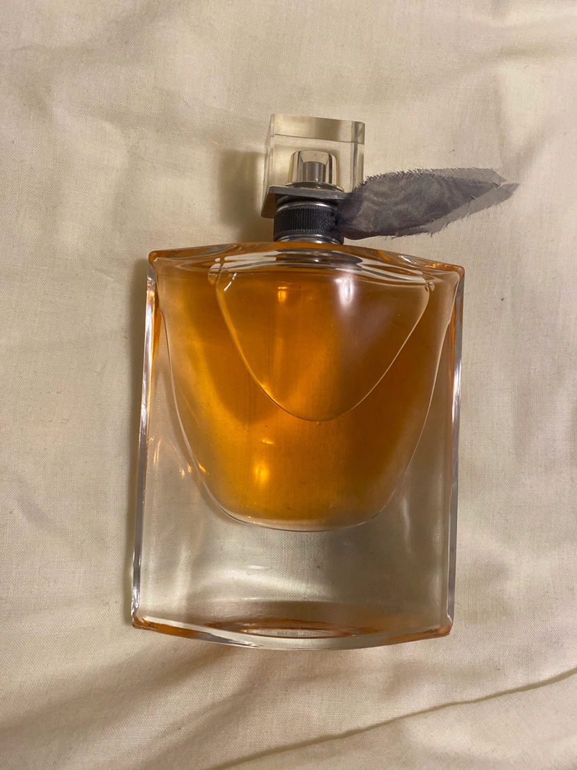 Perfume has been barely used, strong floral smell, it’s actually light pink, but camera is showing orange. 100ml, bought from shoppers drug mart beauty boutique. Box is thrown away. Smells amazing and will last all day.