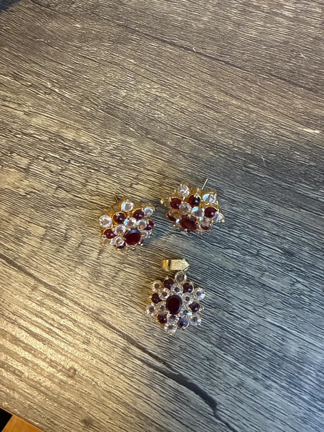 Earrings and Pendant Set with Red and Clear Stones