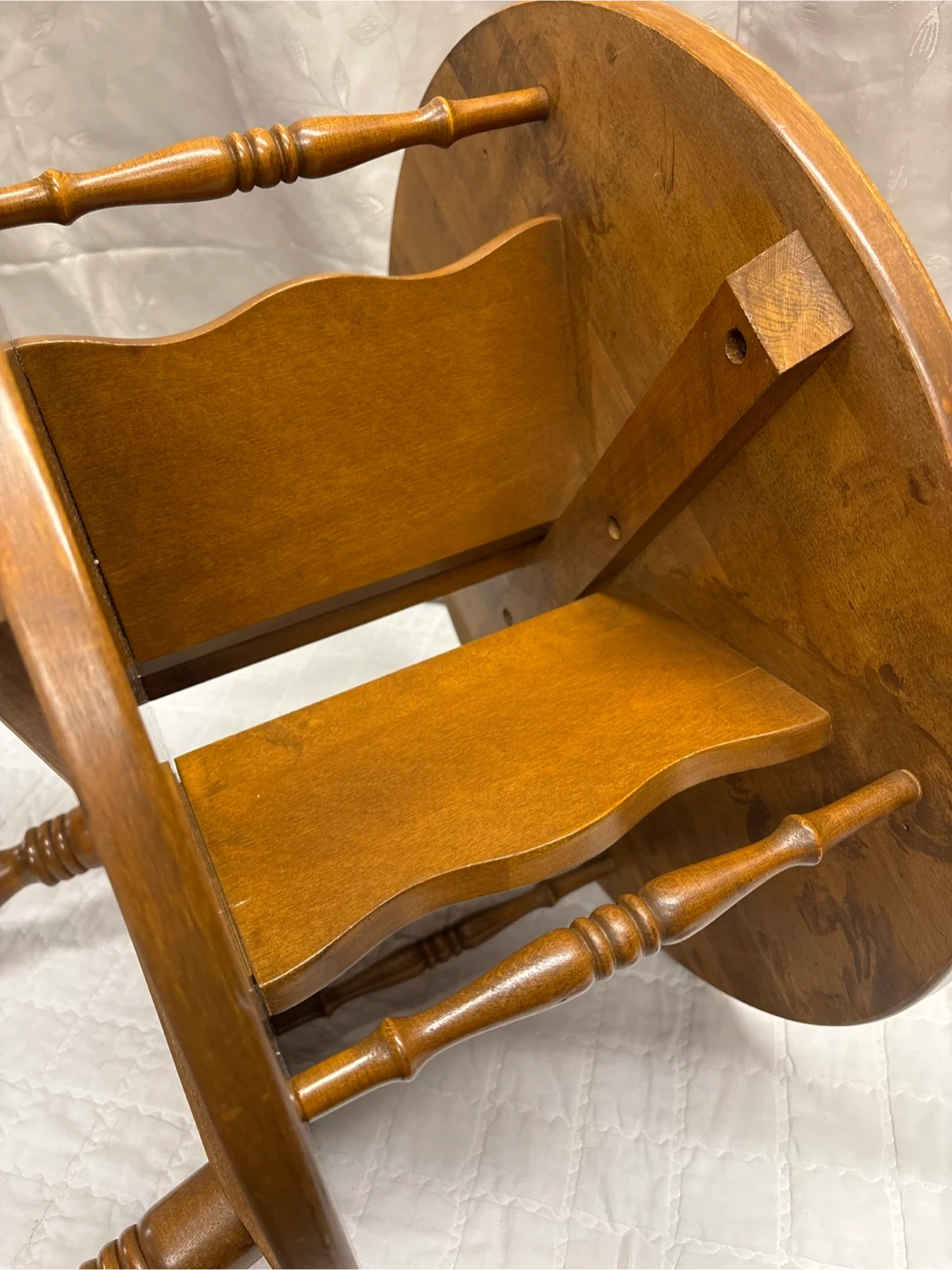 Selling a lovely wooden round accent table with two tiers! It's perfect for adding a touch of charm to any room. It has a classic design with spindle legs and a warm wood finish. It's in good condition and ready for a new home!