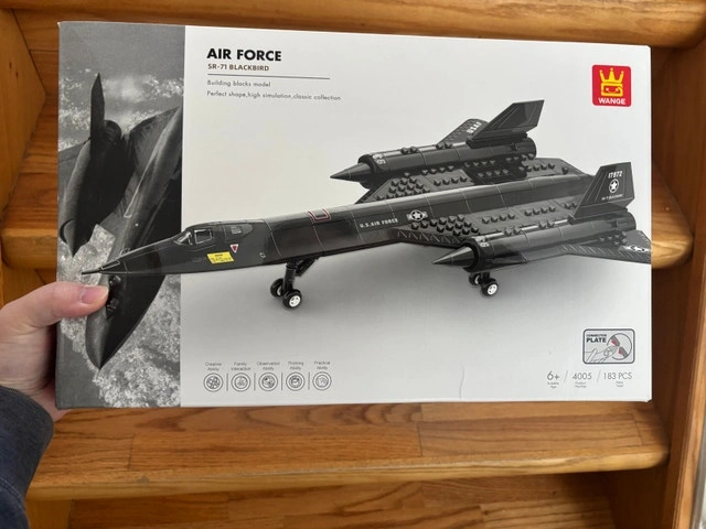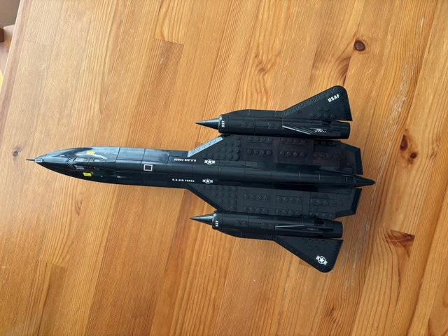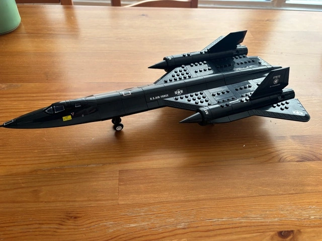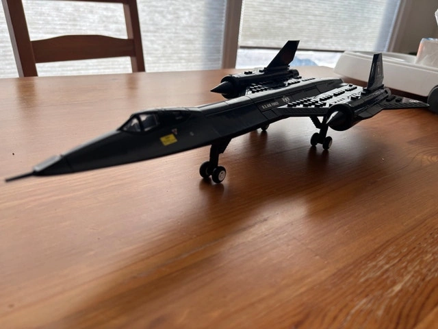 Lego Compatible Large SR-71 Black Bird model building block set. Brand new, sealed in original box. 183 pieces. Dimensions: 43.8cm x 22.7cm x 9.6cm. Excellent design and quality fit. Photos 4-6 show the one I built. Photos 7-8 show it after a matte clear coat for a more realistic finish. Cash only. If the ad is up, it's still available. Check out my other listings for other military building block models for sale.