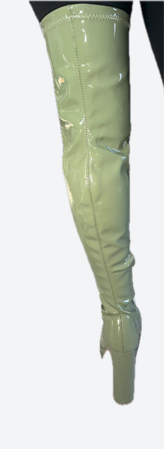 These green thigh-high boots are sure to make a statement! They appear to be in great condition and ready for a new home
