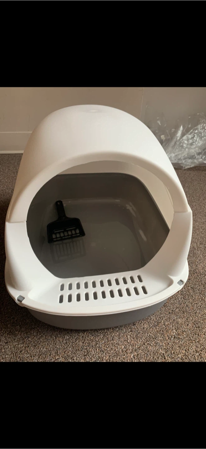 Selling a covered cat litter box! It comes with a scoop to help keep things tidy. It's in great condition and ready for a new home for your feline friend.