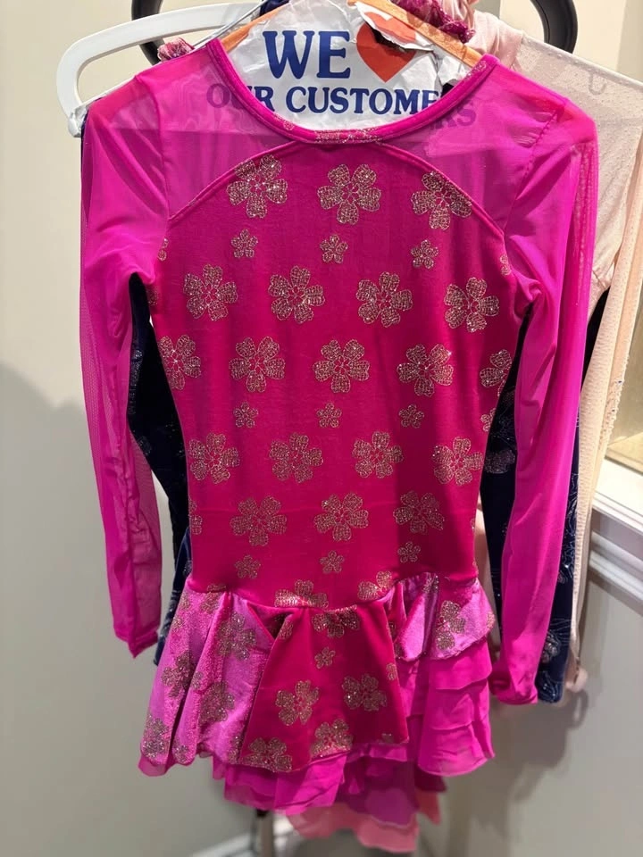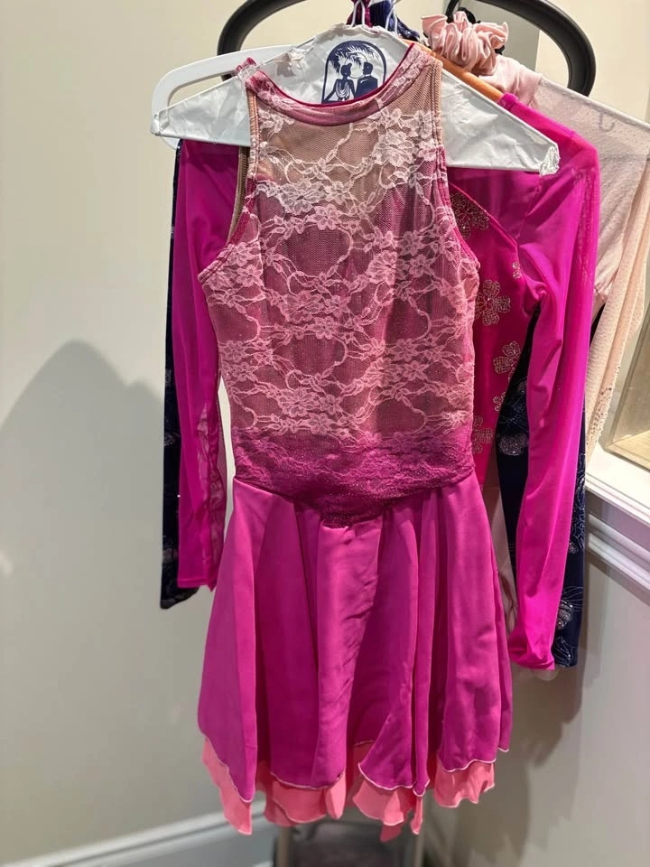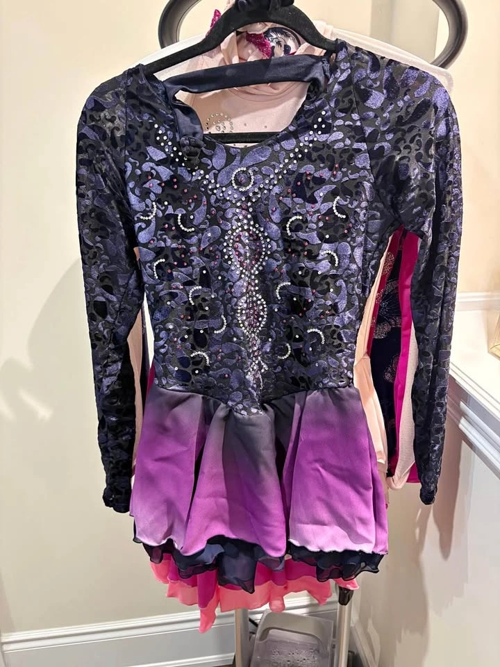 Beautiful figure skating dresses, worn once, in great condition like new. Free tights included. Perfect for skating practice or competitions. Very comfortable stretch fabric and elegant design. Sizes: adult Small and Medium (please see tag in photos). Pickup in Toronto or King City.
